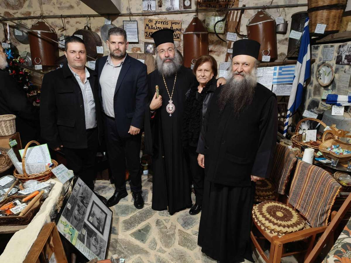 Μετά το πέρας του Εσπερινού, ο Σεβασμιώτατος επισκέφθηκε διάφορες οικίες και ένα παραδοσιακό μουσείο του χωριού, ενώ ακολούθως όλοι μαζί παρακάθησαν σε εόρτιο δείπνο στην οικία του Εφημερίου.