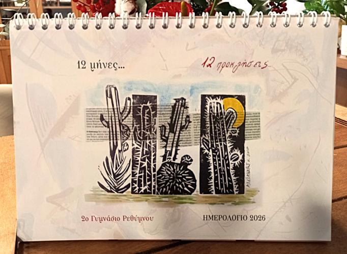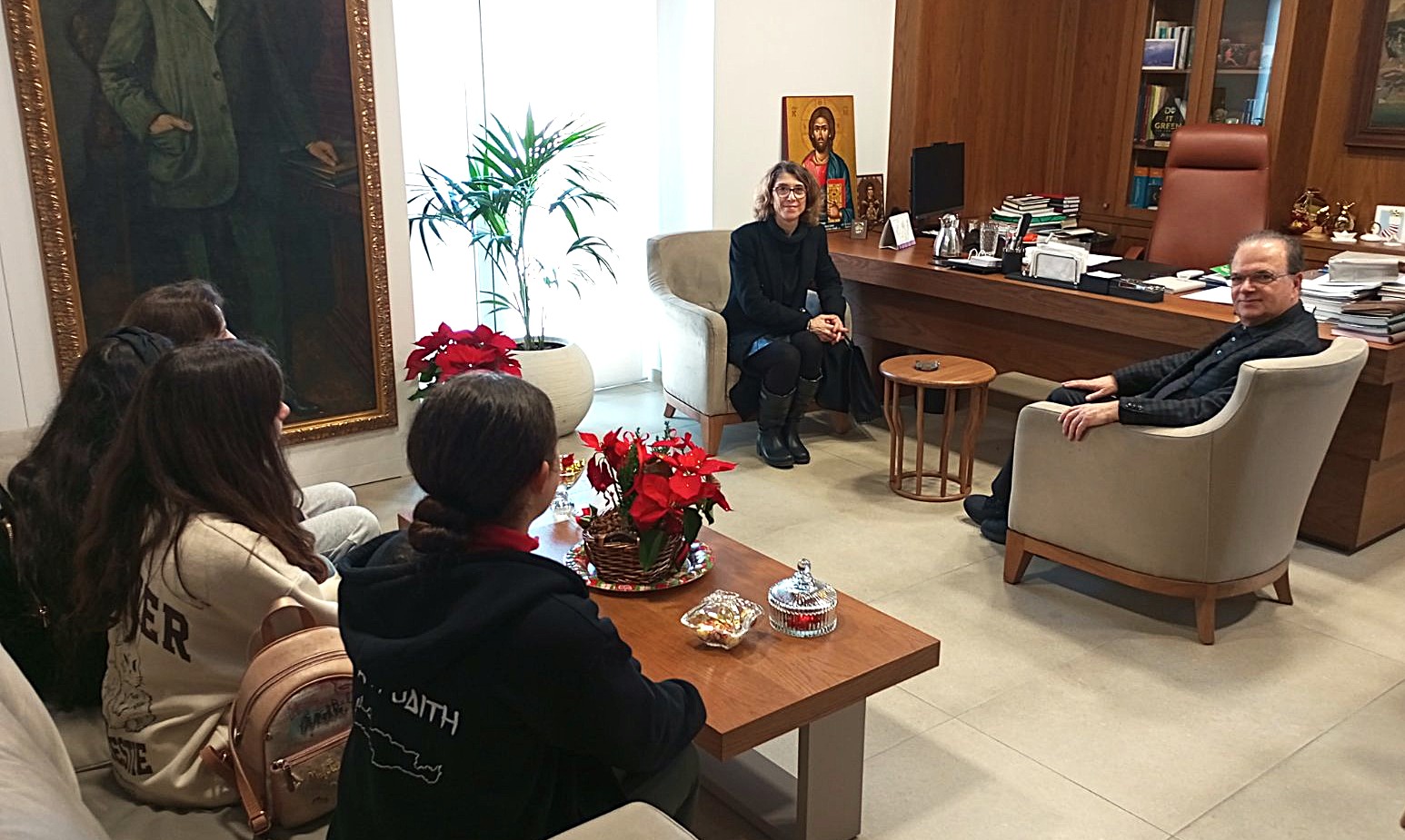 Μαθήτριες που συμμετέχουν στο 15μελές Συμβούλιο του Σχολείου, συνοδευόμενες από την εκπαιδευτικό τους κ. Μάγδα Βροντάκη, προσέφεραν το ημερολόγιο τους, το οποίο έχει θέμα «Δώδεκα μήνες… δώδεκα προκλήσεις».