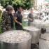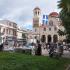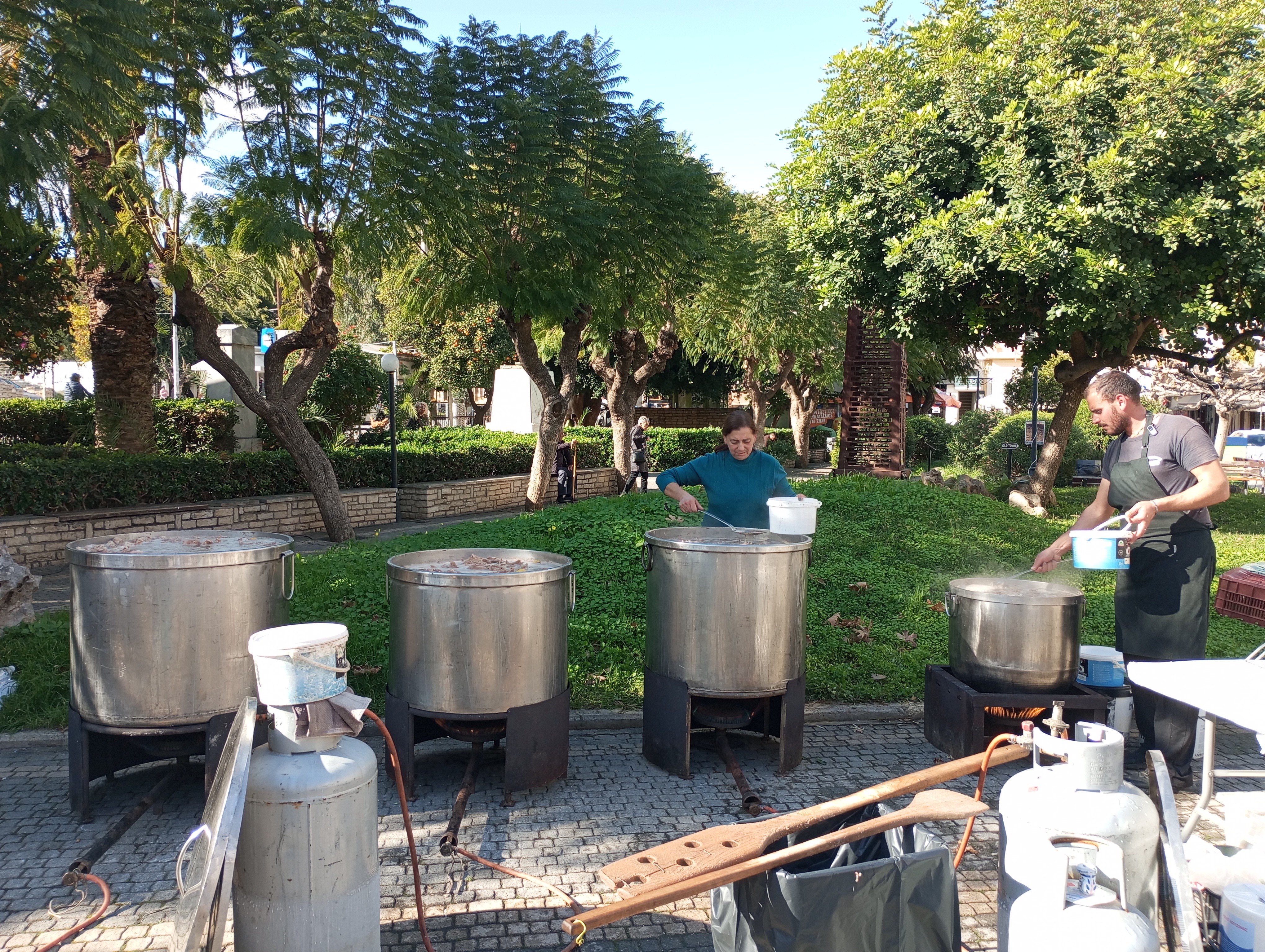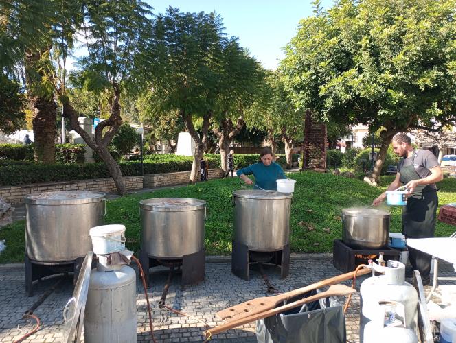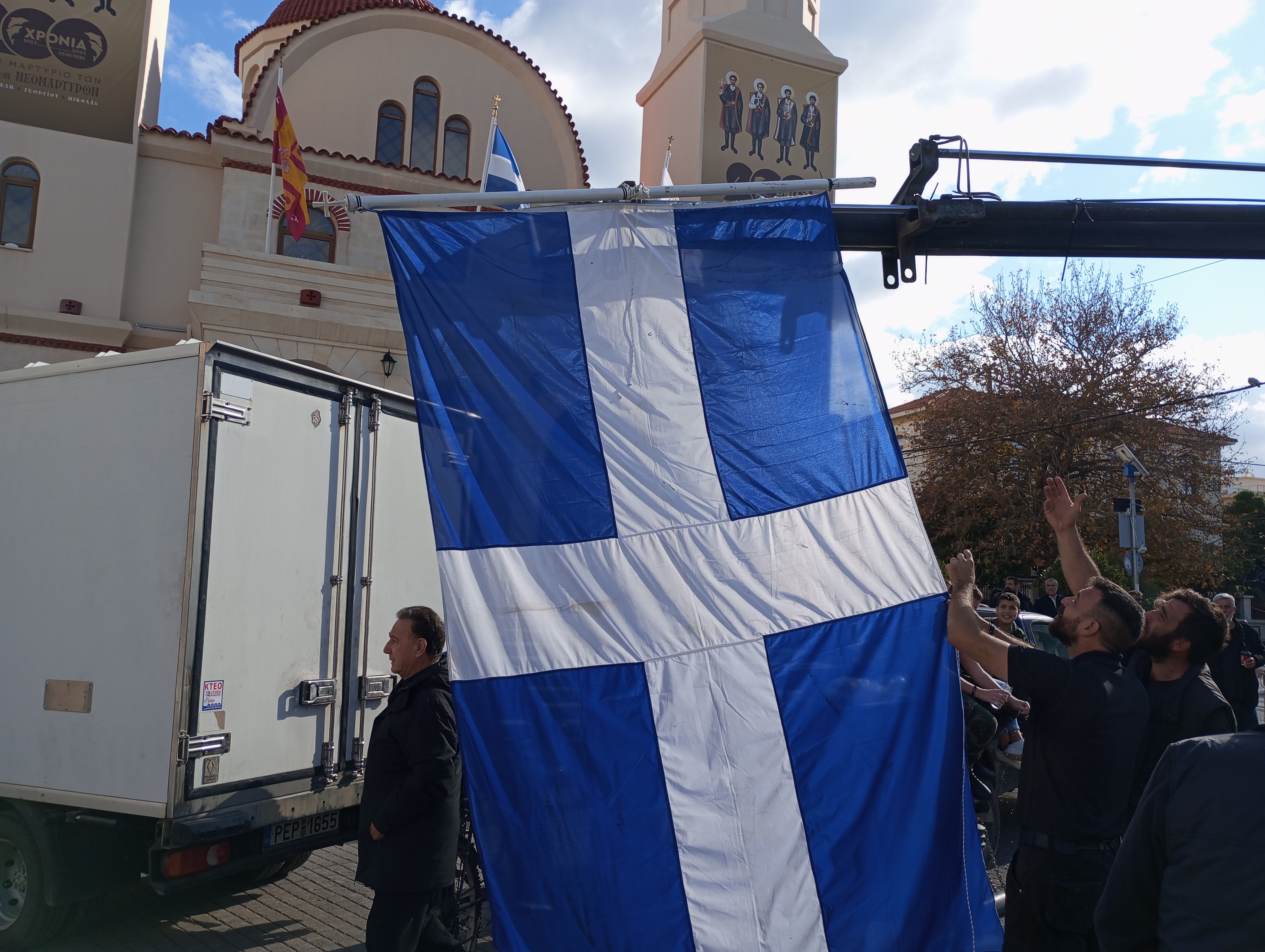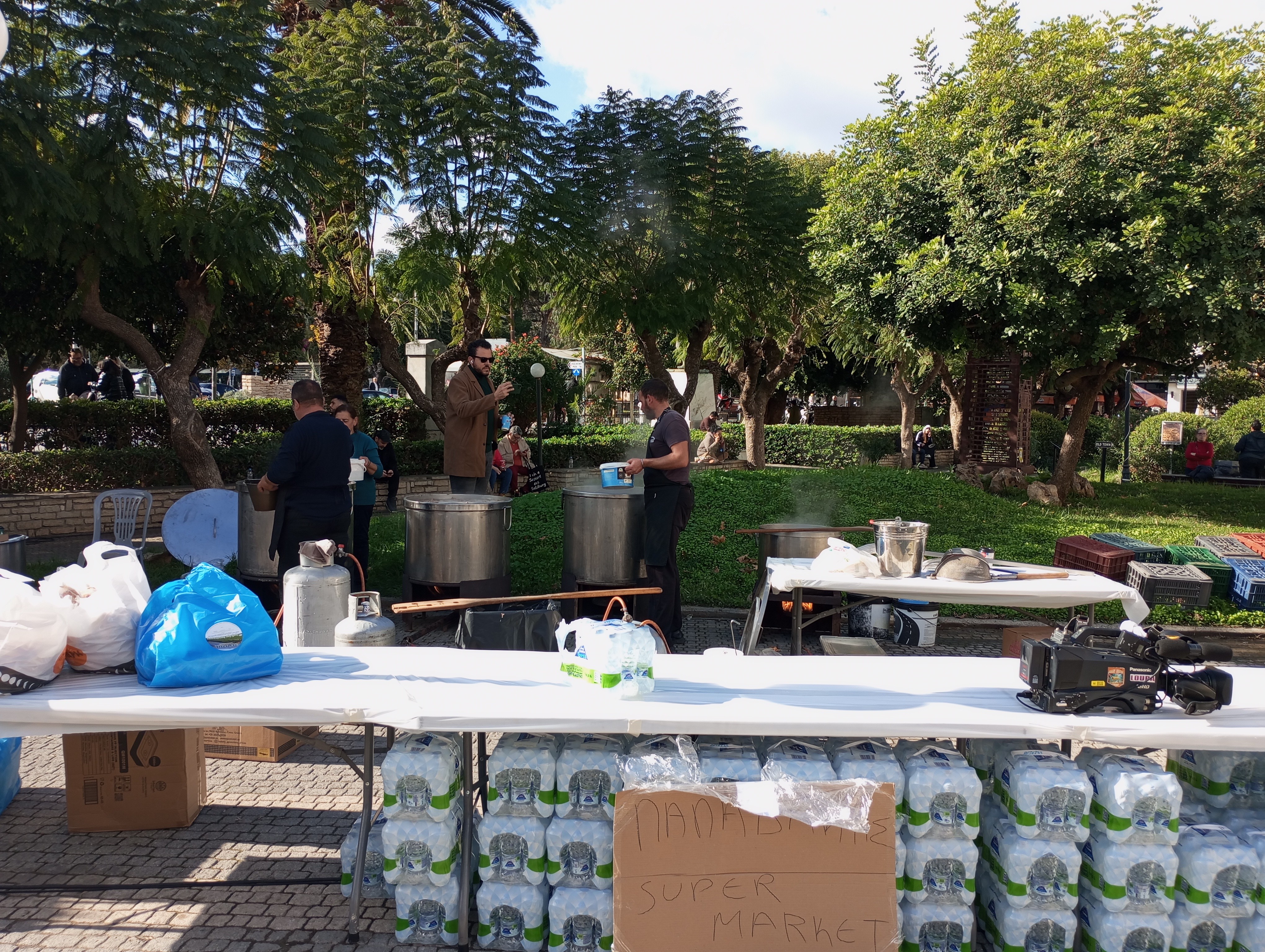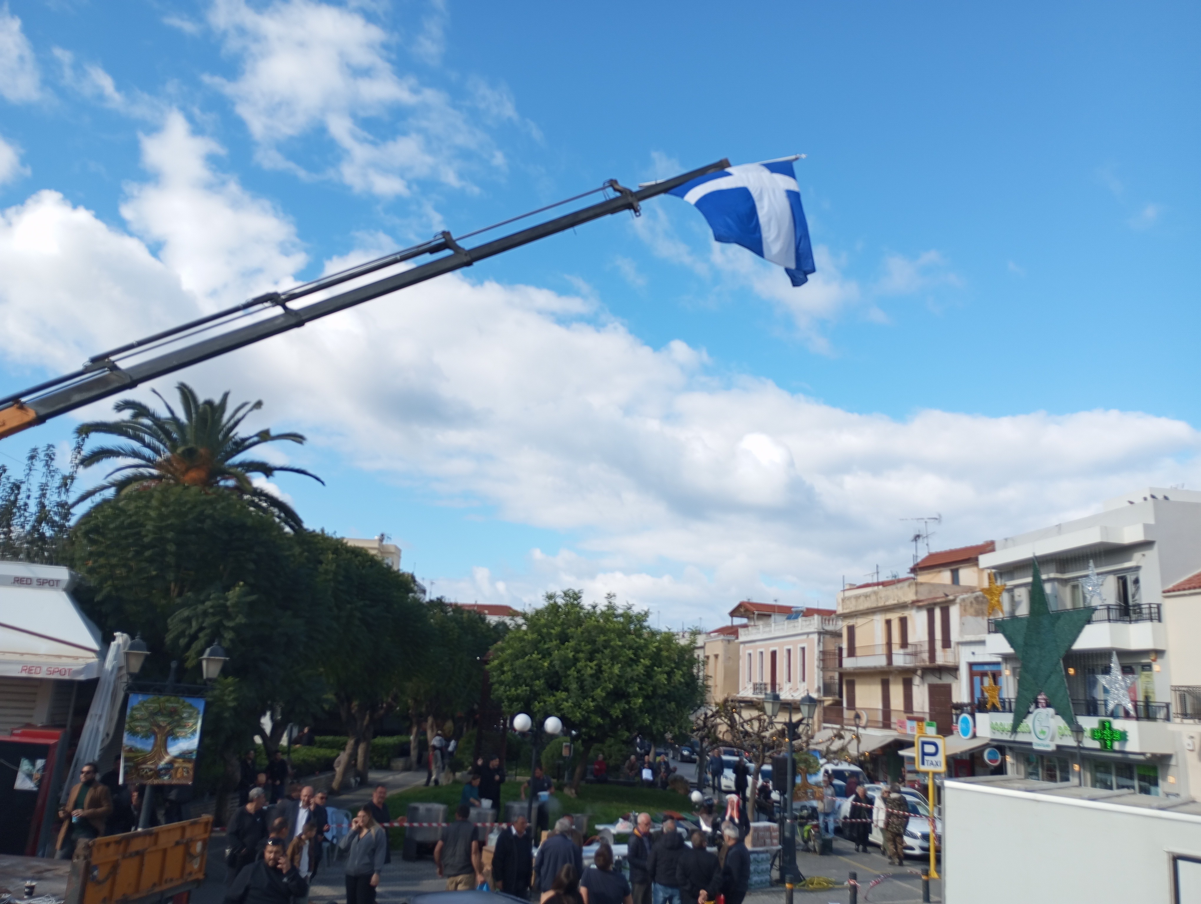 Από το πρωί ύψωσαν με γερανοφόρο όχημα μια μεγάλη Ελληνική Σημαία και έστησαν μεγάλα καζάνια στην Πλατεία Τεσσάρων Μαρτύρων όπου έβρασαν κρέας με σκοπό να το μοιράσουν σε όλο τον κόσμο που ήταν στην αγορά.