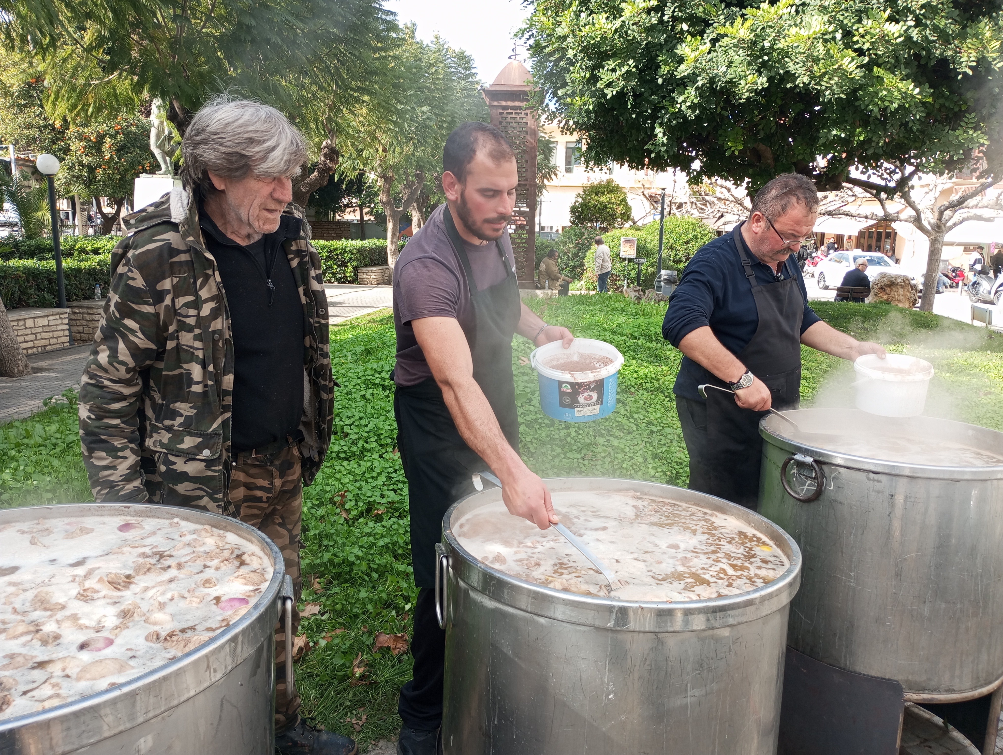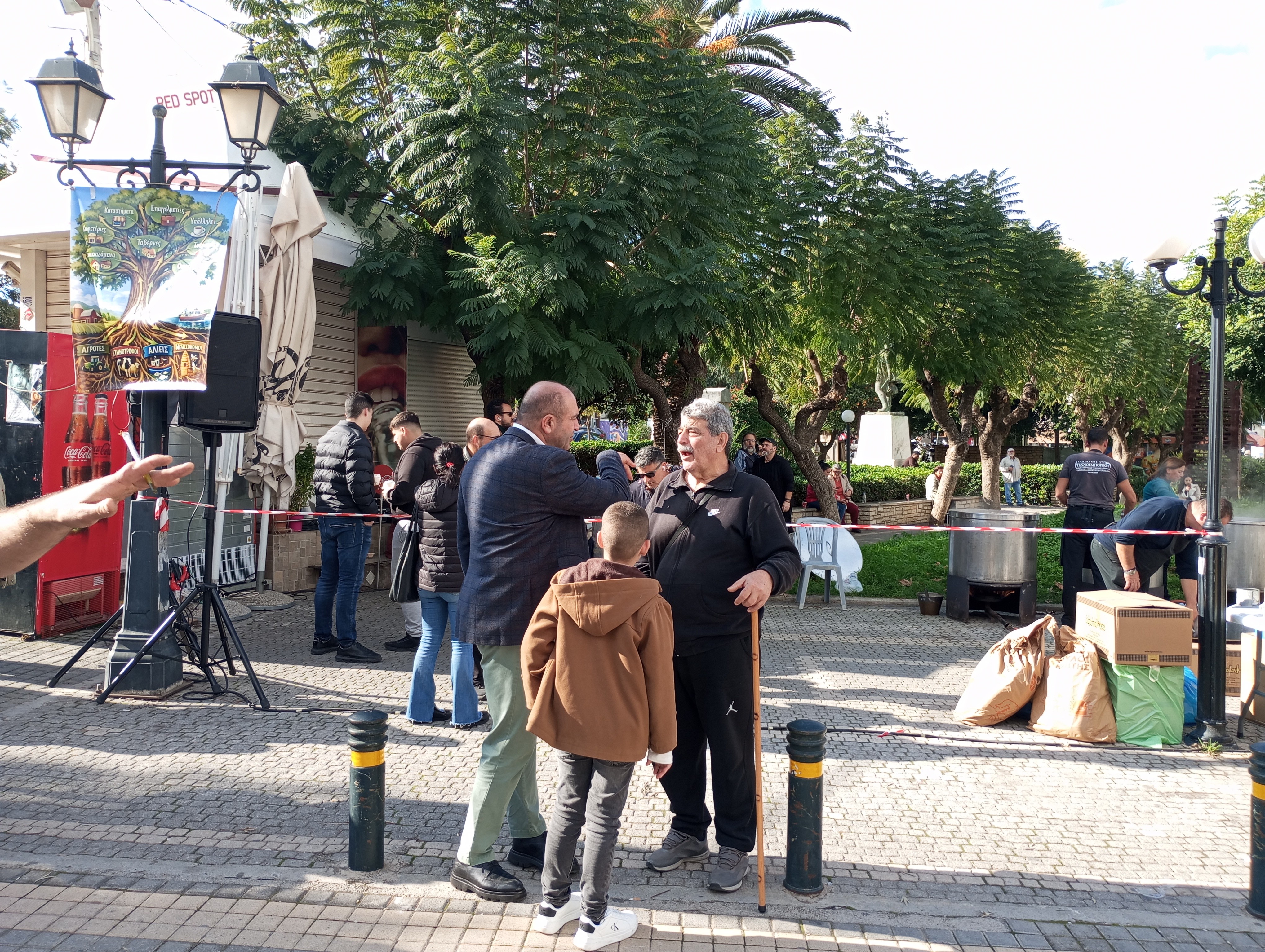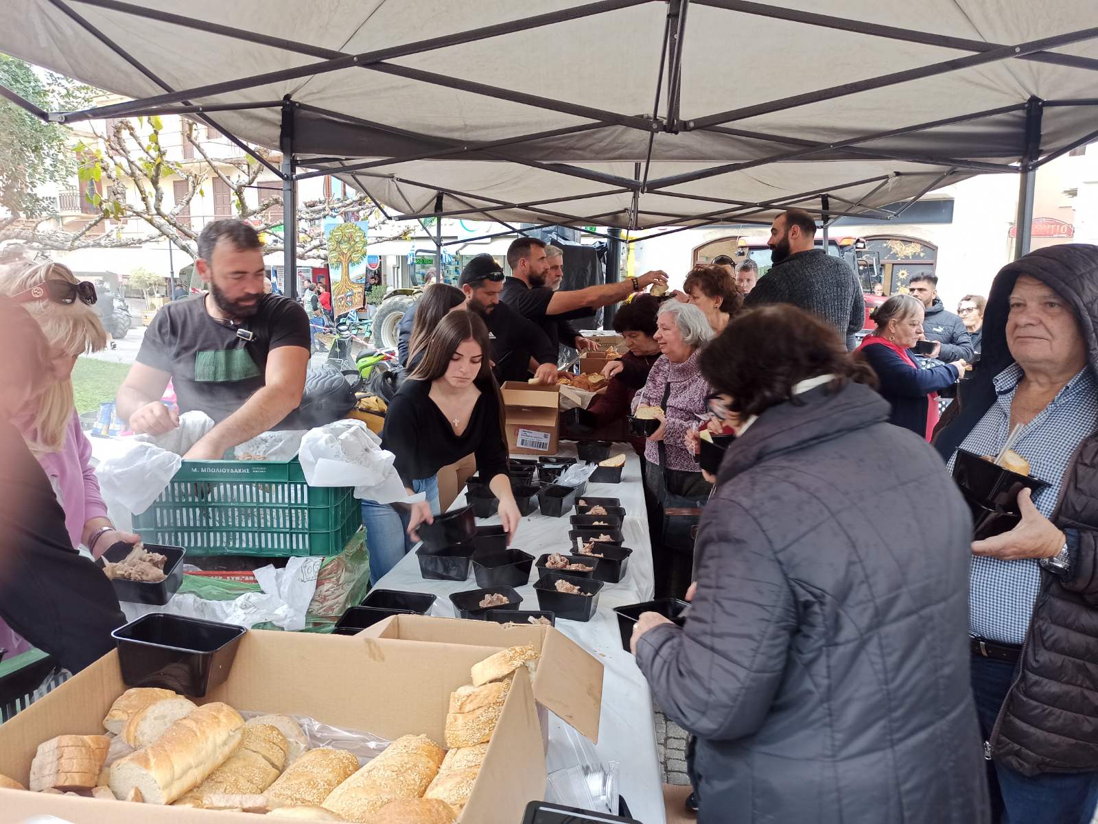 Βραστό κρέας, τυρί, ψωμί, πιλάφι από κριθαράκι, νερό, αναψυκτικά, μπύρες και ντόπιο κρασί ήταν το κέρασμα τους σε όλο τον κόσμο που περνούσε από την πλατεία.