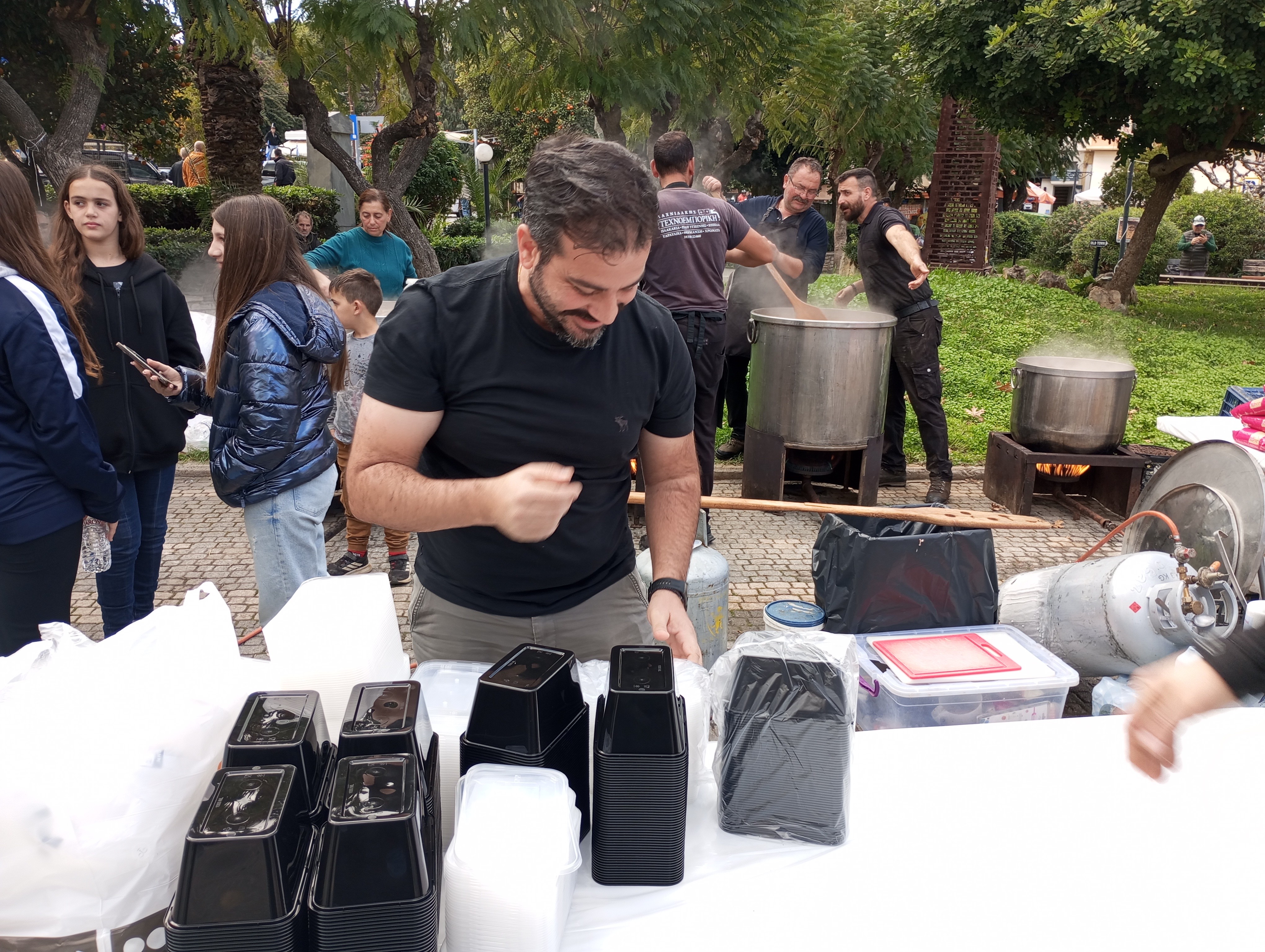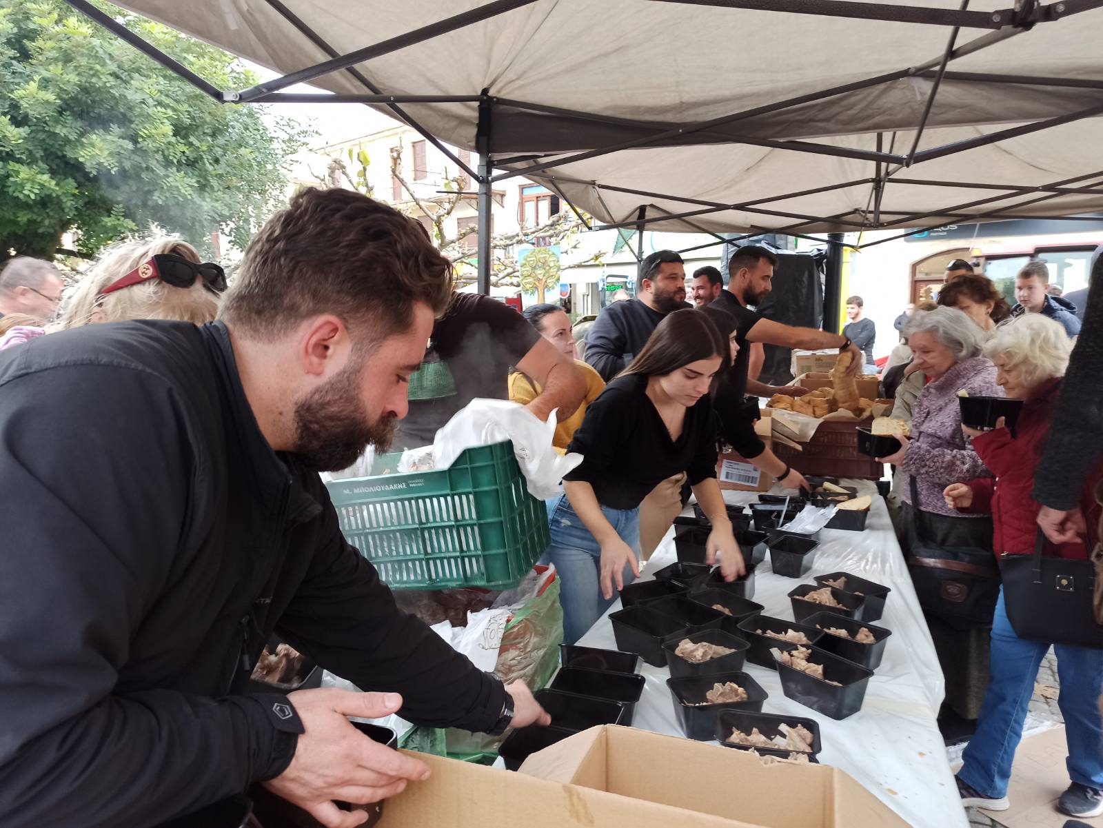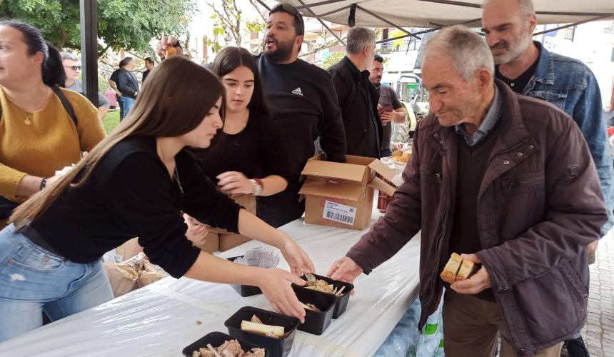 Βραστό κρέας, τυρί, ψωμί, πιλάφι από κριθαράκι, νερό, αναψυκτικά, μπύρες και ντόπιο κρασί ήταν το κέρασμα τους σε όλο τον κόσμο που περνούσε από την πλατεία.