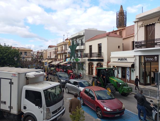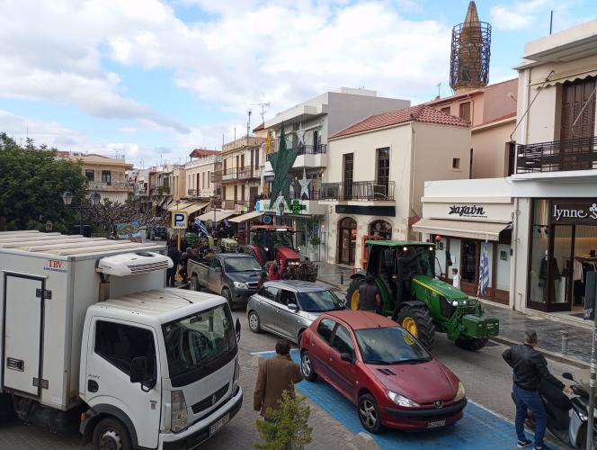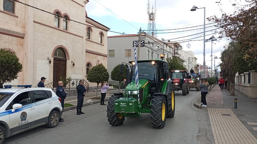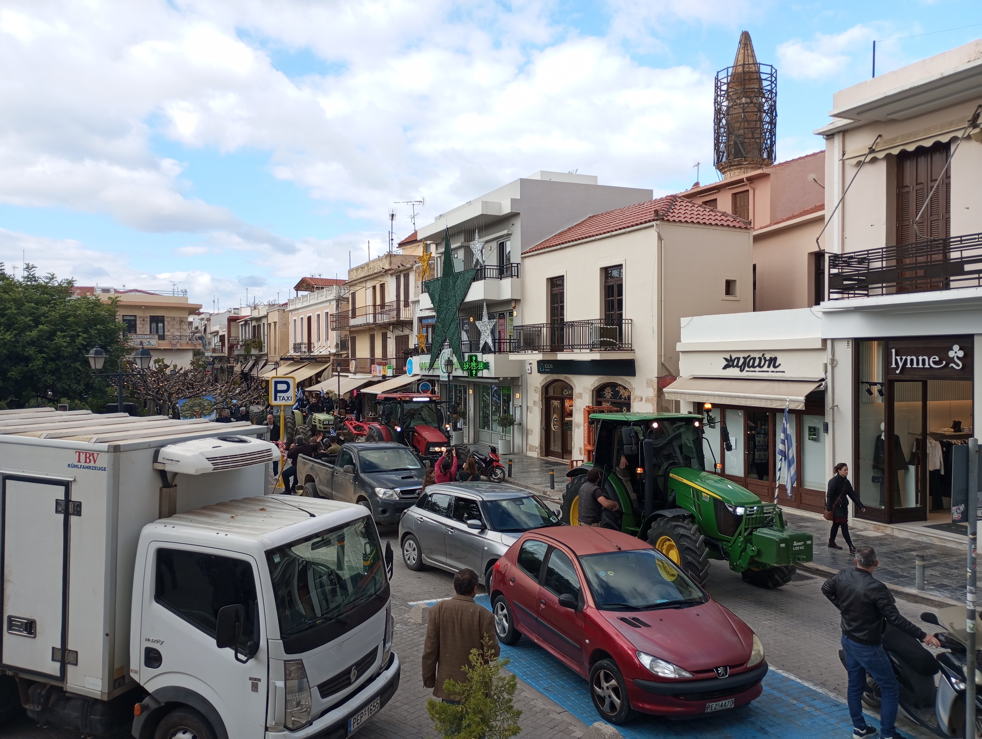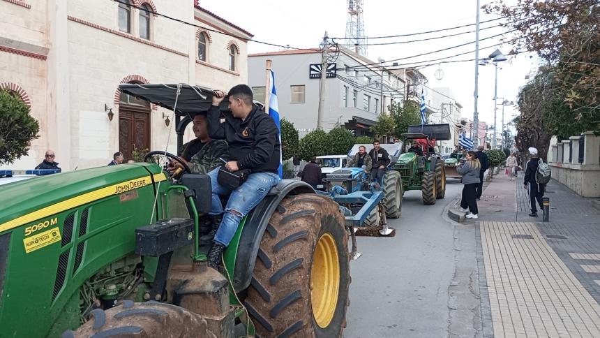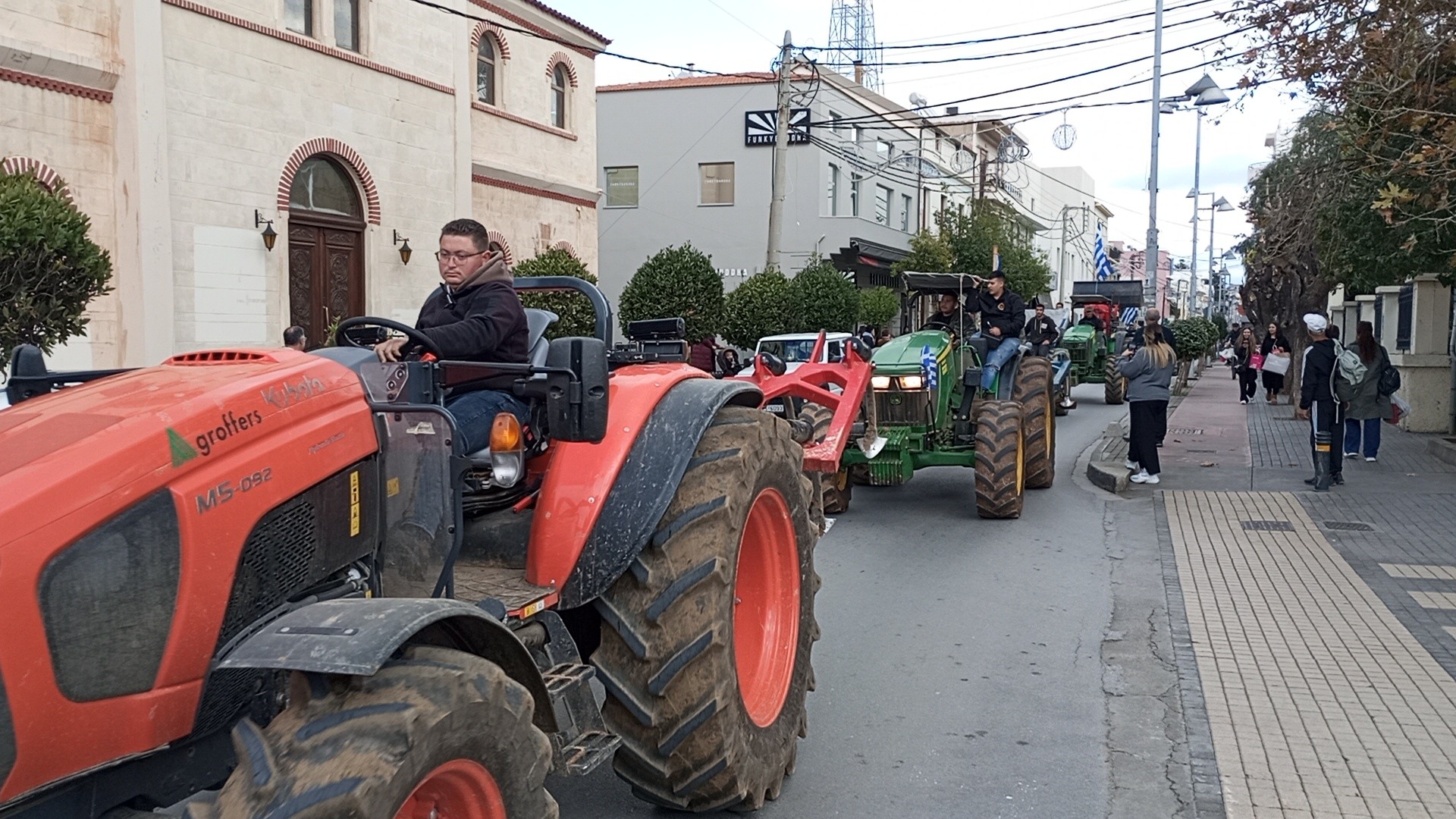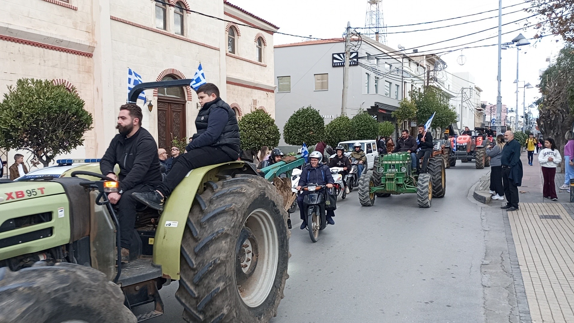 Το μεσημέρι πραγματοποιήθηκε μηχανοκίνητη πορεία με τρακτέρ, αγροτικά μηχανήματα και αγροτικά οχήματα στους κεντρικούς δρόμους που κατέληξε επίσης στην Πλατεία Τεσσάρων Μαρτύρων.
