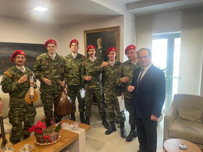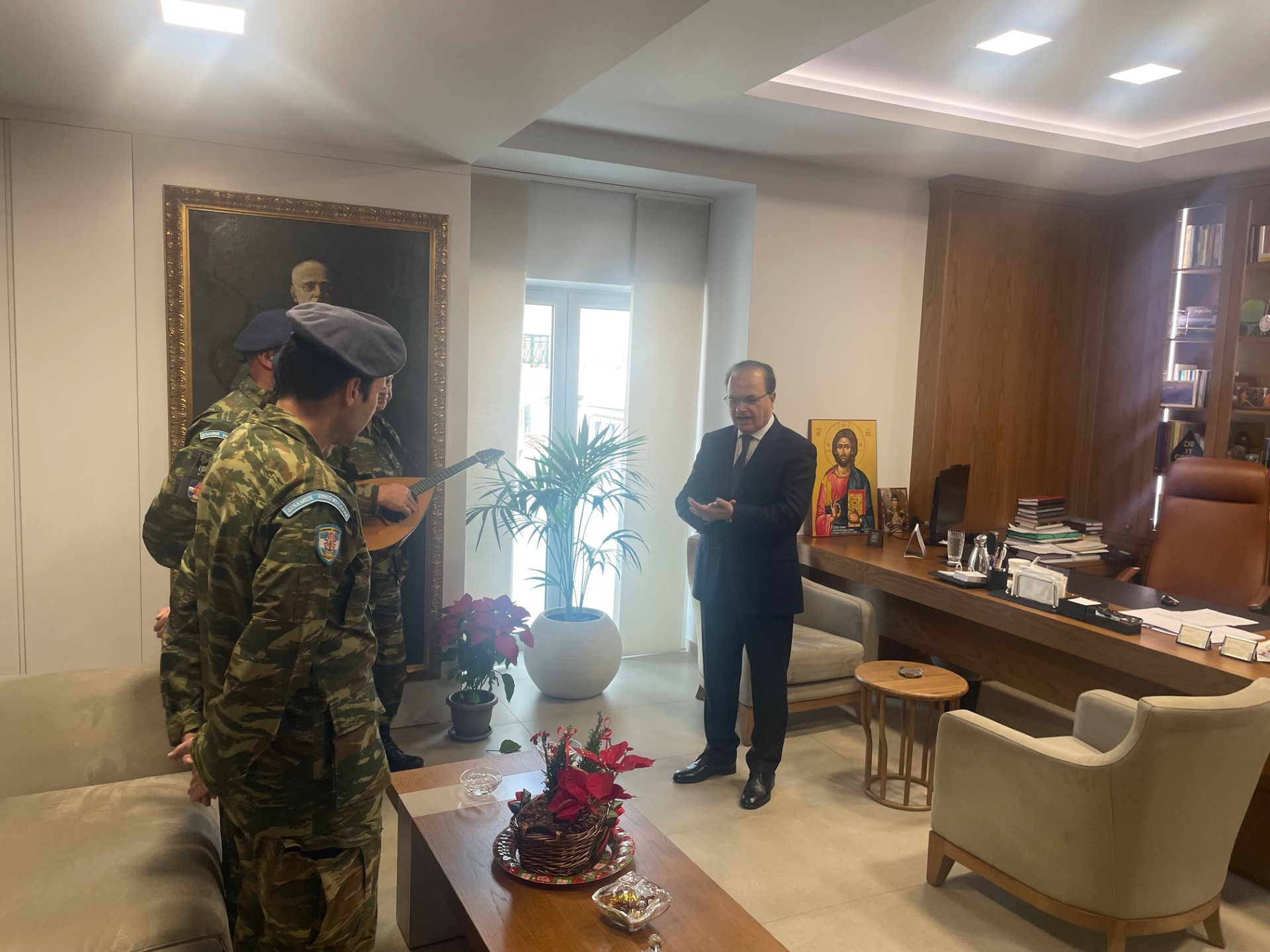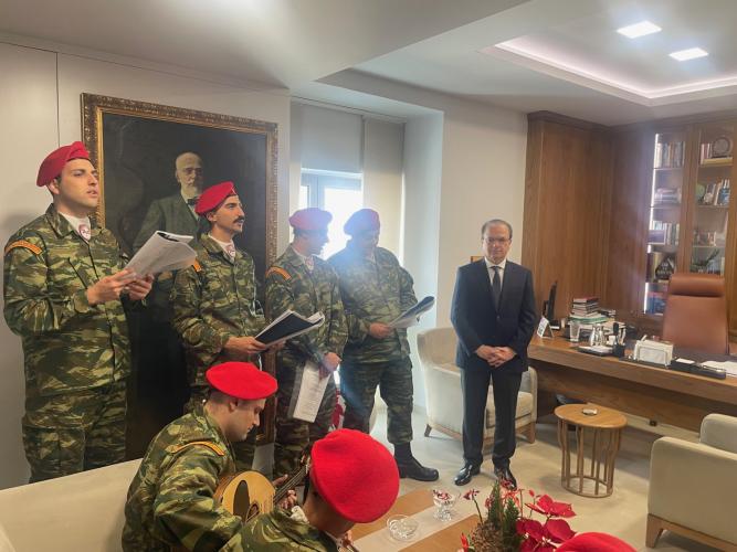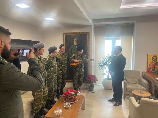Στη συνέχεια ο κ. Μαρινάκης υποδέχθηκε στο γραφείο του την αντιπροσωπεία του Τάγματος Εθνοφυλακής Ρεθύμνου με επικεφαλής τον Ανθυπολοχαγό Ανάργυρο Μαραγκουδάκη.