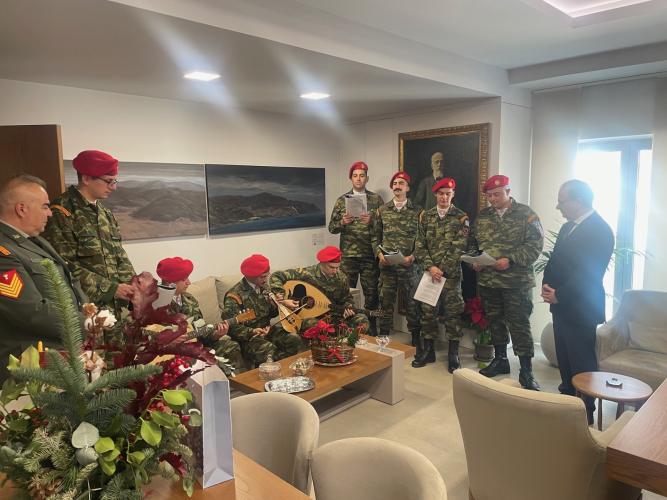 Τη σκυτάλη έλαβε η χορωδία της 5ης Αερομεταφερόμενης Ταξιαρχίας Χανίων-5η Μεραρχία Κρήτης με επικεφαλής τον Αρχιλοχία Νεκτάριο Παπαμιχαήλ και τον Επιλοχία Νικόλαο Τιγγιρίδη, που εκτός από τα παραδοσιακά κάλαντα αφιέρωσε και δυο μαντινάδες στον Δήμαρχο Ρεθύμνης, στον οποίο ευχήθηκε «Βάστα γερά την πόλη», τσουγκρίζοντας προς χάριν του εθίμου και τα ποτηράκια με τη ρακή.
