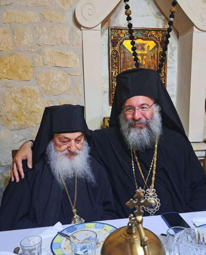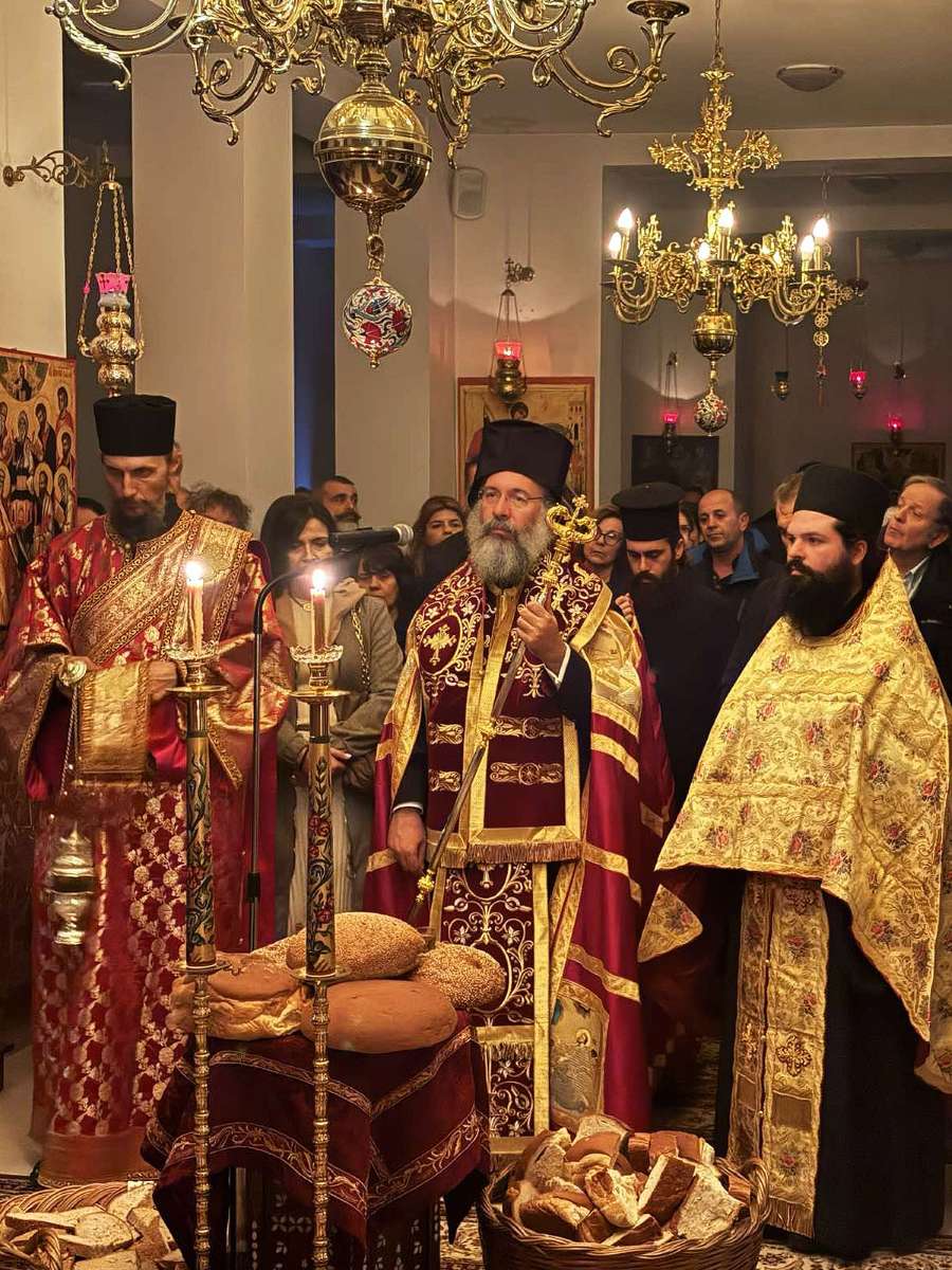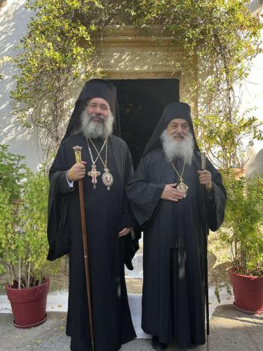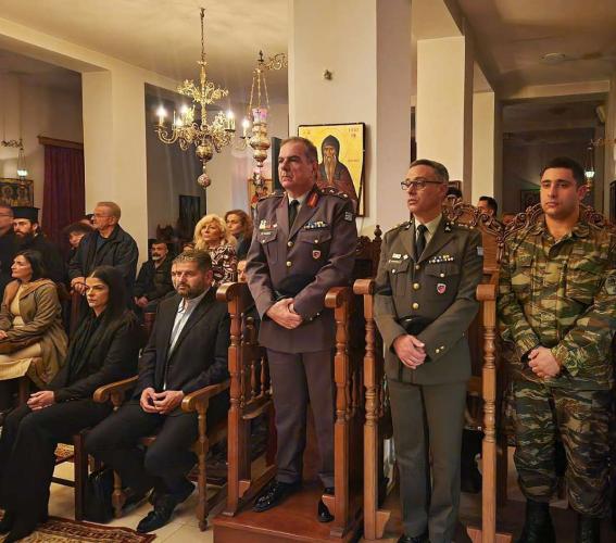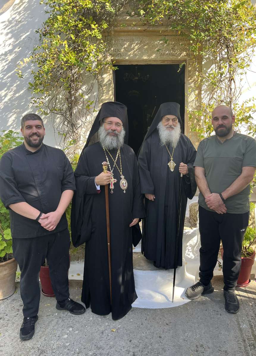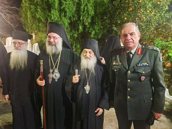Επίσης, ο Σεβασμιώτατος εξέφρασε τη χαρά του για την αυτοπρόσωπη παρουσία του οσιοτρόπου Γέροντος Φιλοθέου, Καθηγουμένου της Ιεράς Μονής Καρακάλλου, εκ μέρους του οποίου ο Σεβασμιώτατος προσέφερε αναμνηστικά δώρα προς τον παριστάμενο Ταξίαρχο κ. Θεόδωρο Δρακόπουλο, Διοικητή 44 Στρατιωτικής Διοικήσεως «ΤΑΛΩΣ»-ΣΕΑΠ, κατά σάρκα ανιψιό του Γέροντος Φιλοθέου, και προς τον Εντιμολογιώτατο κ. Γεώργιο Χατζηχρονόγλου, Άρχοντα Υμνωδό της Αγίας του Χριστού Μεγάλης Εκκλησίας και Διευθυντή της Βυζαντινής Χορωδίας Αθηνών, η οποία απέδωσε αριστοτεχνικά τους ύμνους του εορταστικού διημέρου.