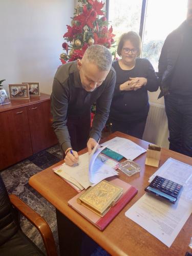 Κατά την ορκωμοσία, ο Δήμαρχος Γεώργιος Κλάδος καλωσόρισε θερμά τον νέο υπάλληλο, καθώς και τη σύζυγό με τα παιδιά τους που παρευρέθηκαν στην τελετή, ευχόμενος καλή επιτυχία στο έργο που αναλαμβάνει.