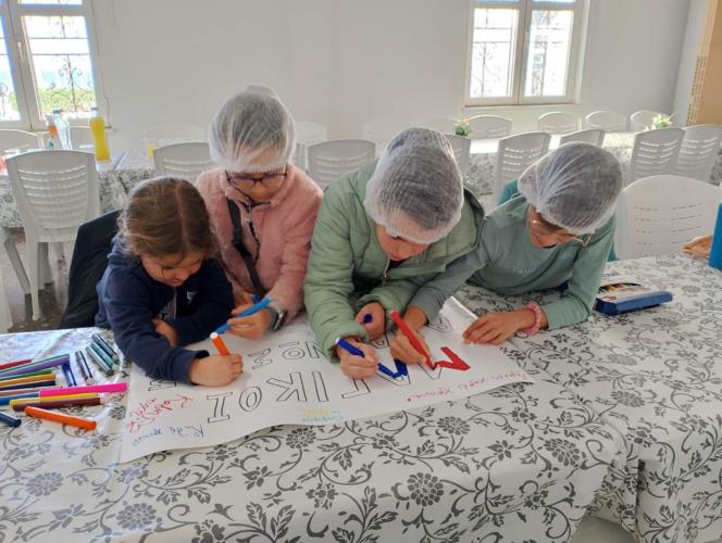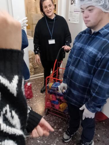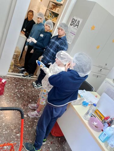 Μας υποδέχτηκε η κοινωνική λειτουργός κ. Αποστολάκη Νικολέτα η οποία μετέδωσε με ενθουσιασμό στα παιδιά την αγάπη της για προσφορά κι αλληλεγγύη. Μας πληροφόρησε για τα θαύματα που πραγματοποιούνται εκεί καθημερινά και μας επέτρεψε να γίνουμε για λίγο κι εμείς κοινωνοί τους. Τα παιδιά τακτοποίησαν τα τρόφιμα στην αποθήκη, ζύγισαν και μοίρασαν σε σακουλάκια ένα σακί φακή και ζωγράφισαν τη δική τους μεγάλη κάρτα.