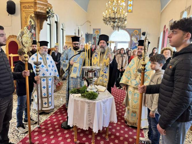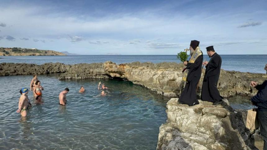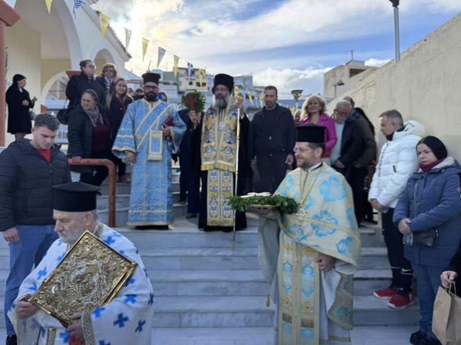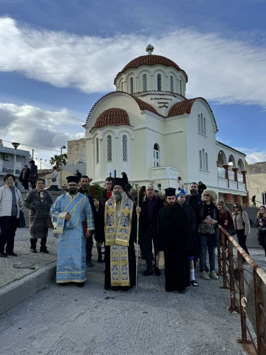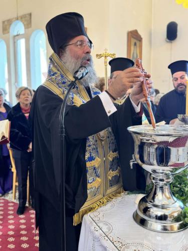 Ακολούθως, για πρώτη φορά, ο Σεβασμιώτατος μετά των Εφημερίων και του εκκλησιάσματος μετέβησαν, με λιτανευτική πομπή, στην τοποθεσία «δεσποτική κολύμπα», όπου ο Σεβασμιώτατος έριψε τον Τίμιο Σταυρό, τον οποίο ανέσυραν χειμερινοί κολυμβητές, και ευλόγησε τη νηστήσιμη Αγιοβασιλόπιτά τους.
