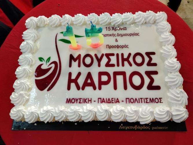Ένας σημαντικός σταθμός, μια γιορτή μνήμης αλλά και πορείας, σηματοδότησε τη συμπλήρωση 15 χρόνων συνεχούς παρουσίας και δημιουργικής προσφοράς του Μουσικού Καρπού στον χώρο της μουσικής παιδείας και του πολιτισμού στον τόπο μας.