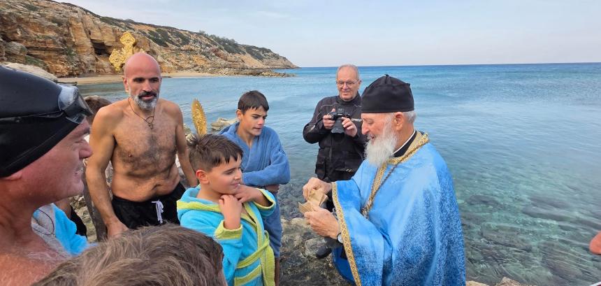Δεκαπέντε τολμηροί κολυμβητές, μικροί και μεγάλοι, αψηφώντας το κρύο, βούτηξαν στα αγιασμένα νερά για να τιμήσουν το ιερό έθιμο, κρατώντας ζωντανή την παράδοση και το πνεύμα των Θεοφανίων.