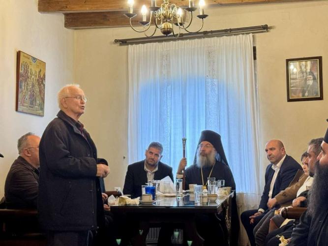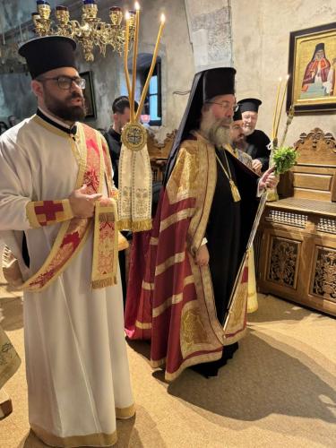 Μετά το πέρας της Θείας Λειτουργίας, στο αρχονταρίκι και ακολούθως στην τράπεζα της Ιεράς Μονής, ο νέος Πρεσβύτερος της Εκκλησίας δέχθηκε τις ευχές όλων των χριστιανών, κληρικών και λαϊκών, που προσήλθαν.