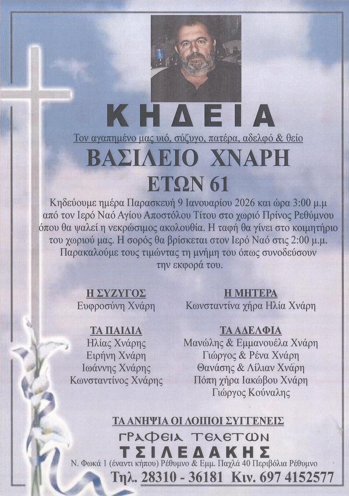 Έφυγε σε ηλικία 61 ετών προκαλώντας οδύνη στην οικογένεια του και θλίψη σε όλους τους φίλους και τους γνωστούς του που τον αποχαιρετούν σήμερα.