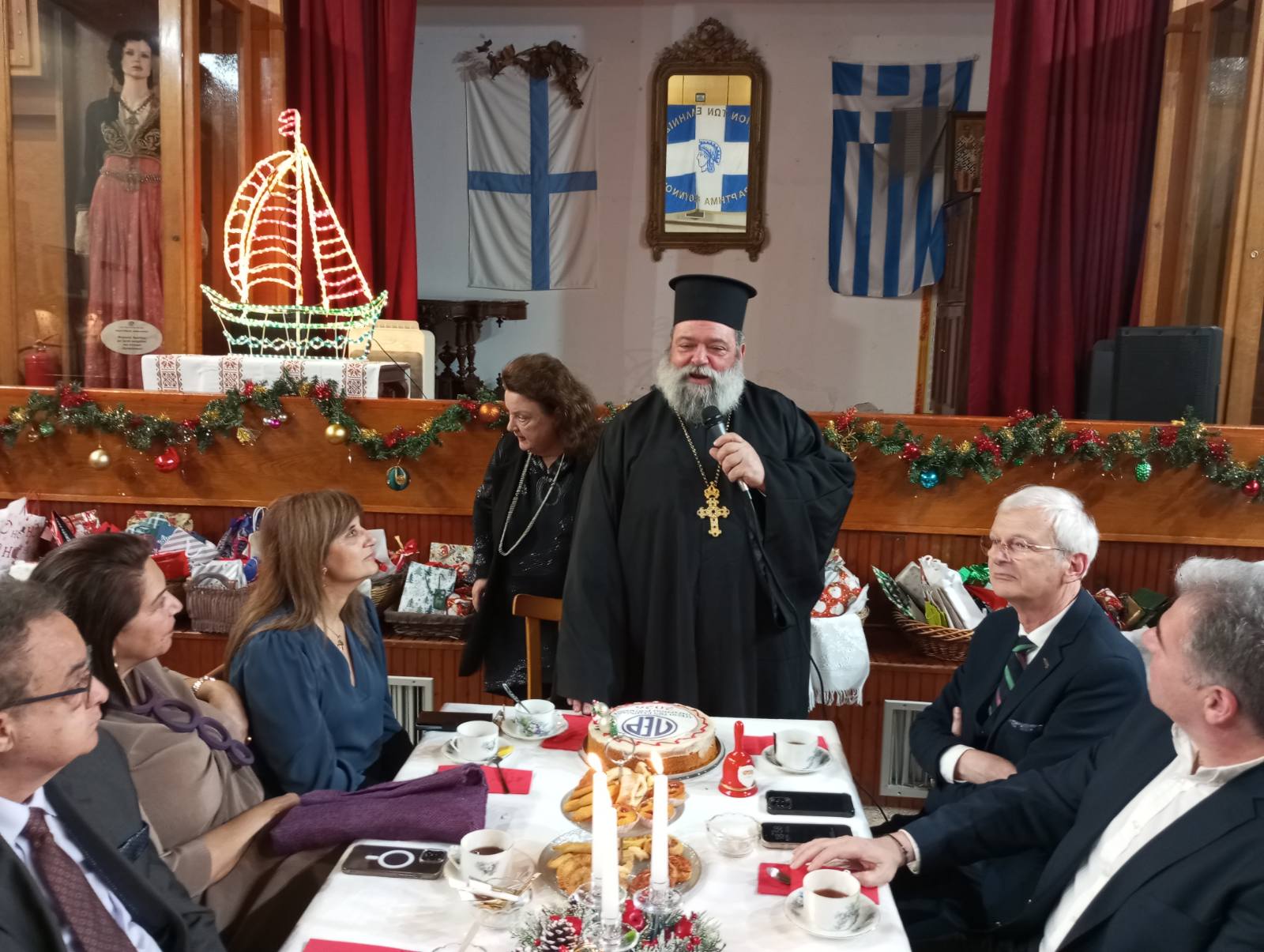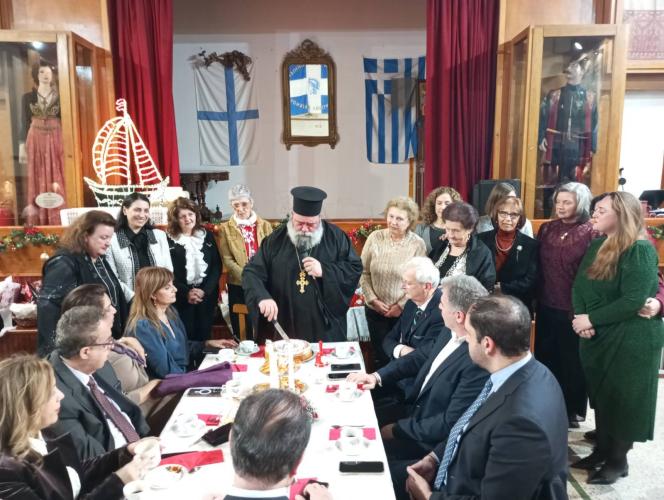 Την πίτα έκοψε ο Γενικός Αρχιερατικός Εκπρόσωπος της Μητροπόλεως, Πρωτοπρεσβύτερος π. Νικόλαος Νικηφόρος ως εκπρόσωπος του Σεβασμιωτάτου Μητροπολίτη Ρεθύμνης και Αυλοποτάμου.