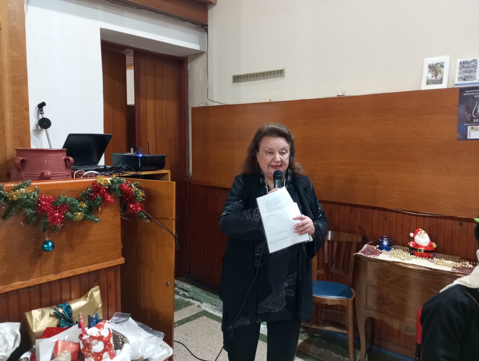 Η Πρόεδρος κ. Φέφη Βαλαρή υποδέχθηκε με θερμά λόγια τους θαμώνες της εκδήλωσης ενώ δεν έκρυψε την αγωνία της για την πολεμική ατμόσφαιρα που σκιάζει την είσοδο του νέου έτους.