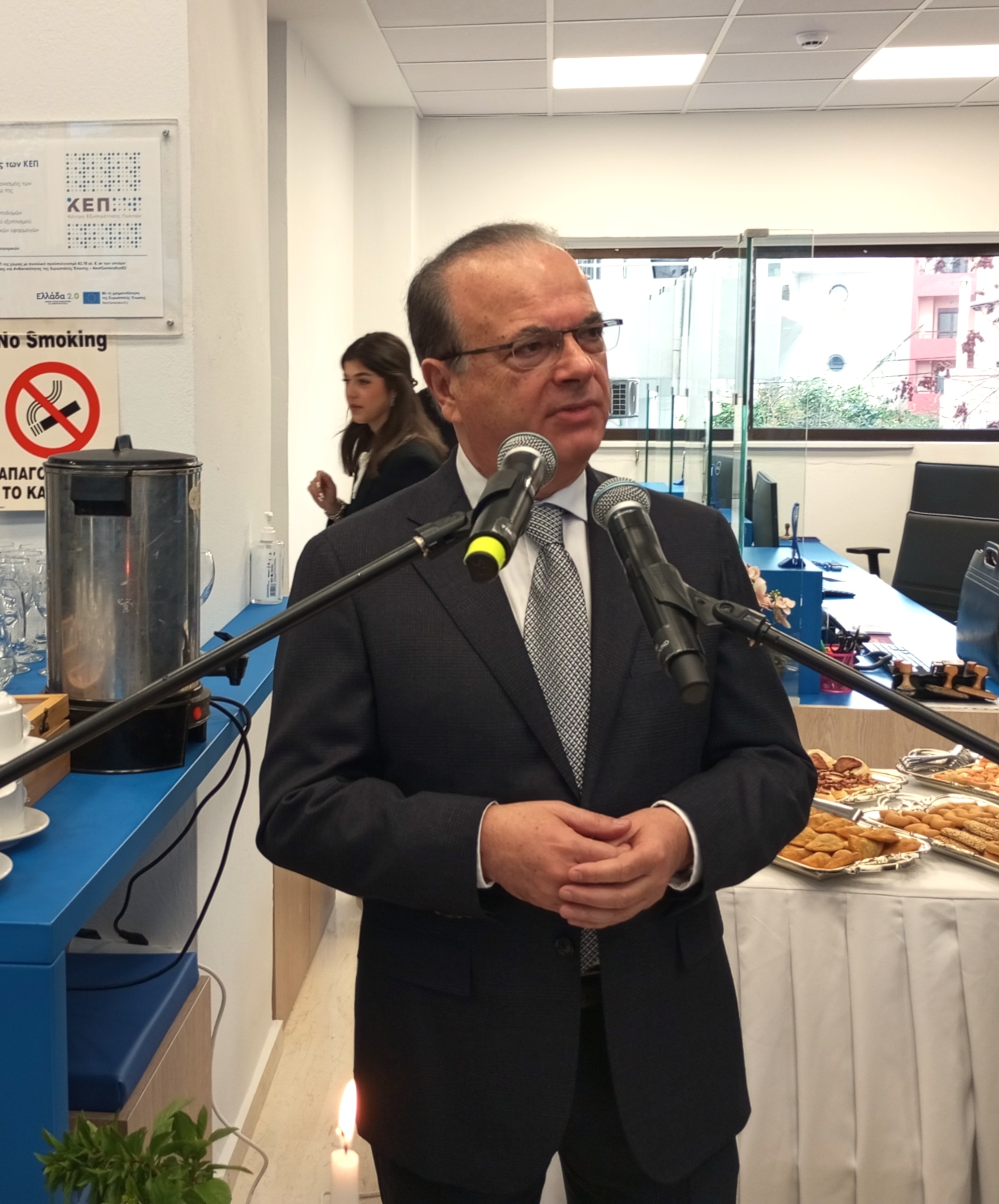 Από την πλευρά του ο Υπουργός Εσωτερικών, στον χαιρετισμό του, υπογράμμισε τη σημασία της λειτουργίας των ΚΕΠ για την καθημερινή εξυπηρέτηση των πολιτών.