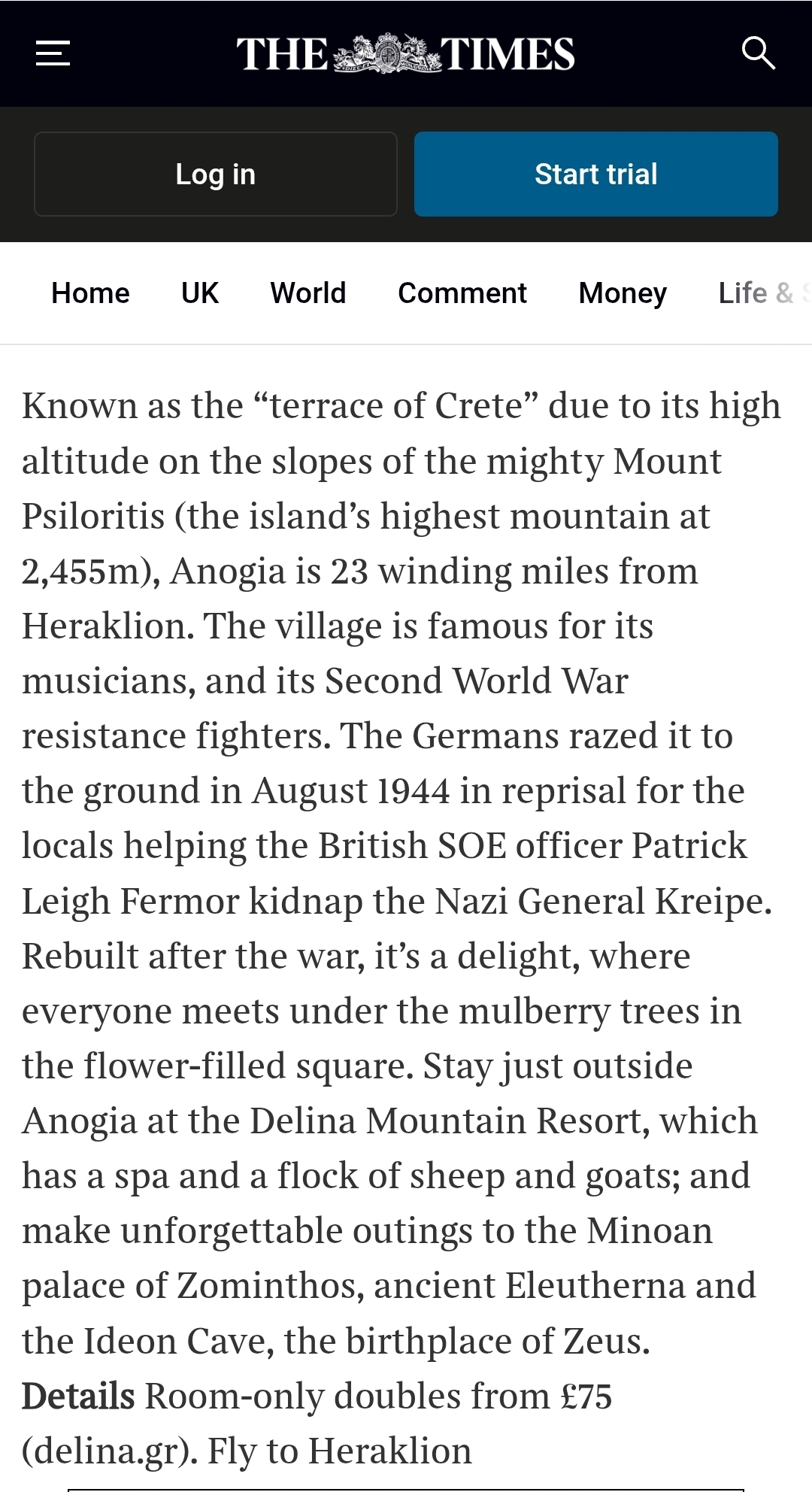 Στο ειδικό αφιέρωμα Travel Greece Special της The Sunday Times περιλαμβάνονται τα Ανώγεια Κρήτης, μεταξύ 25 από τα ομορφότερα και αυθεντικότερα χωριά της Ελλάδας.