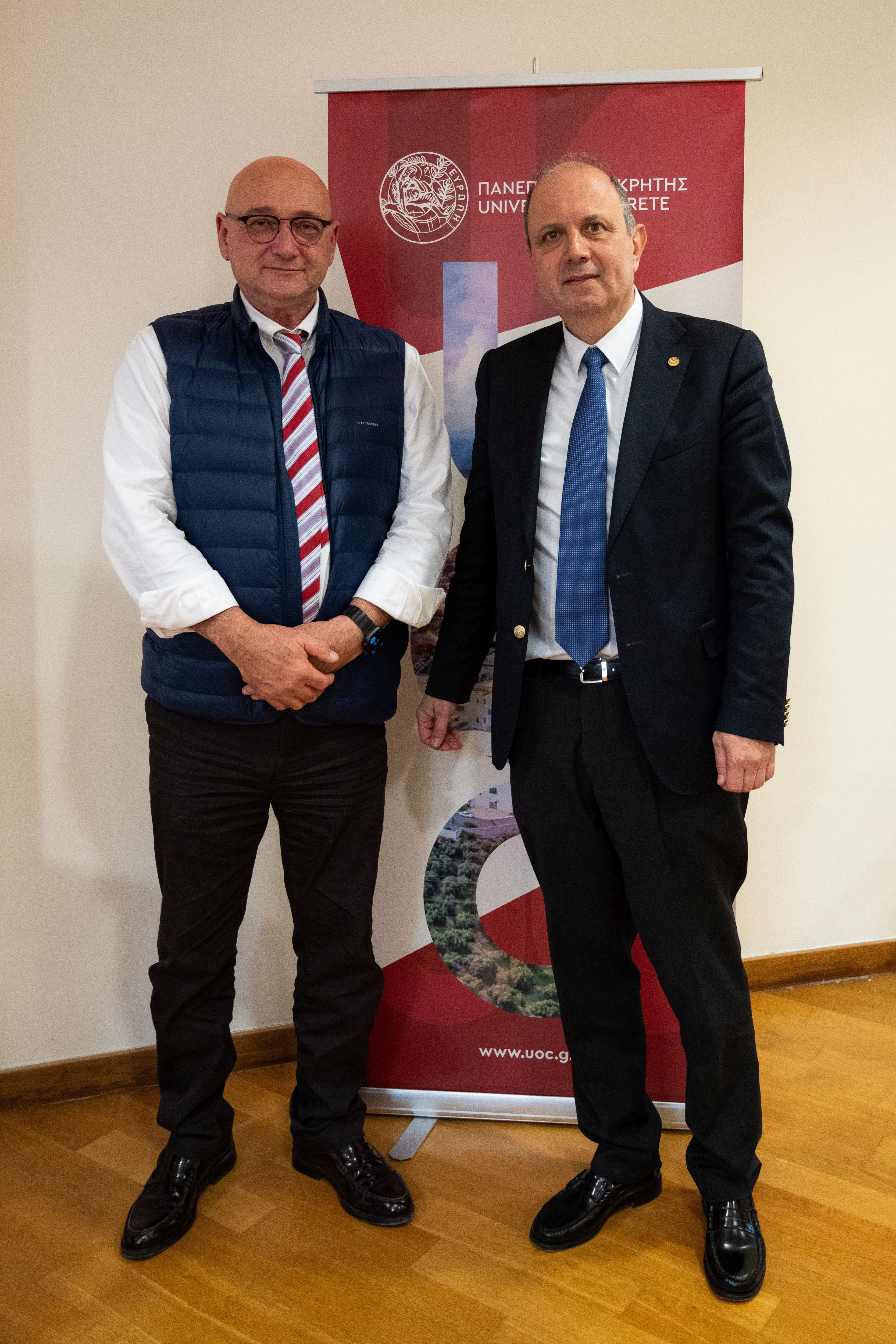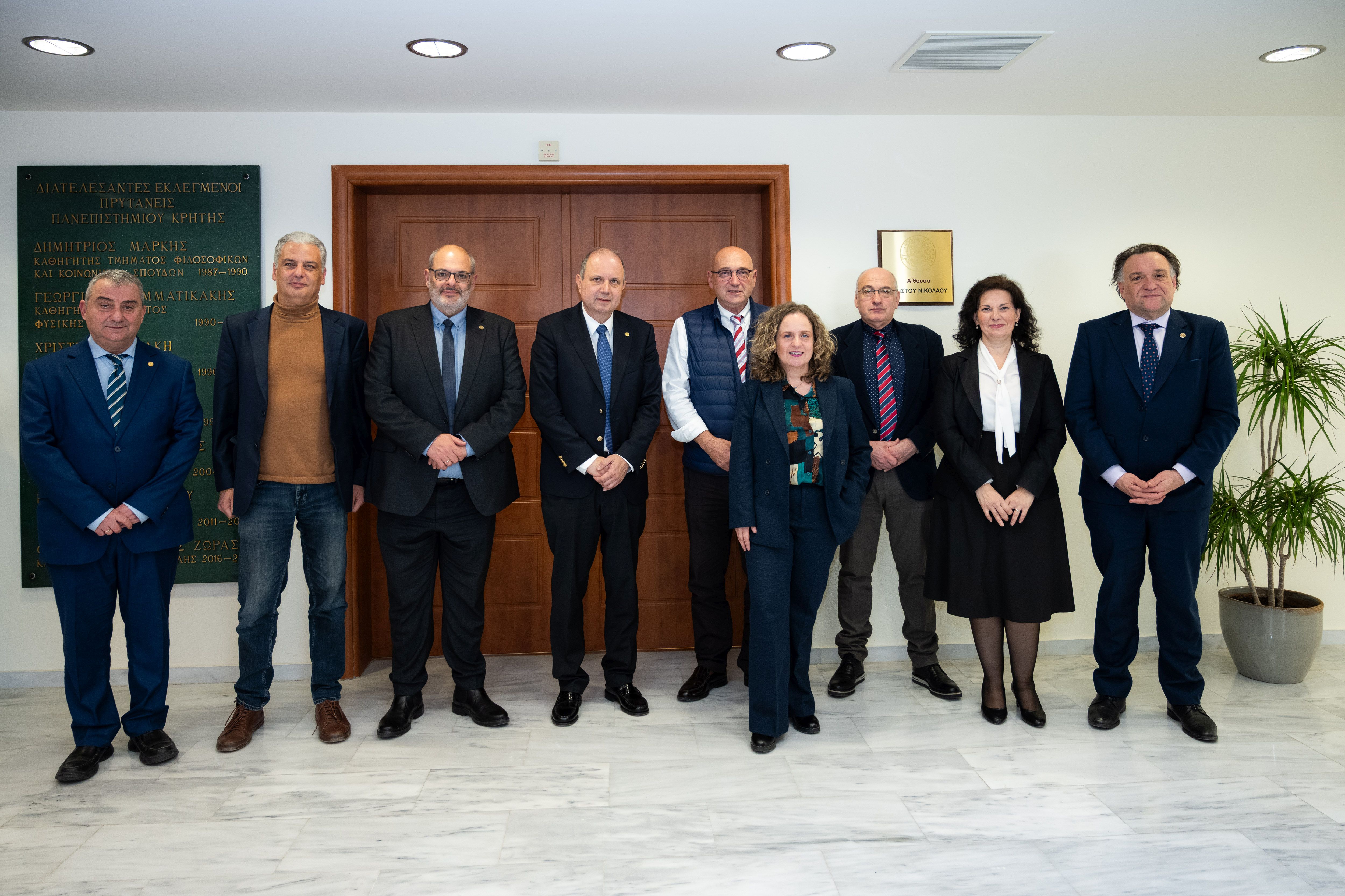 Από πλευράς Πανεπιστημίου Κρήτης παρέστησαν ο Πρύτανης του Ιδρύματος Καθηγητής Γεώργιος Μ. Κοντάκης, η Αντιπρύτανης Ακαδημαϊκών Υποθέσεων, Δια Βίου Μάθησης και Ερευνητικής Πολιτικής Καθηγήτρια Μαρία Βαμβακάκη, ο Αντιπρύτανης Οικονομικών και Υποδομών Καθηγητής Γεώργιος Σταματόπουλος, η Αντιπρύτανης Διοικητικών Υποθέσεων και Φοιτητικής Μέριμνας Καθηγήτρια Σοφία Σχίζα, η Αντιπρύτανης Ανάπτυξης, Διεθνών Σχέσεων και Εξωστρέφειας Καθηγήτρια Μελίνα Ταμιωλάκη και το εσωτερικό μέλος του Συμβουλίου Διοίκησης του Πανεπιστημίου Κρήτης Καθηγητής Γεώργιος Κοσιώρης.