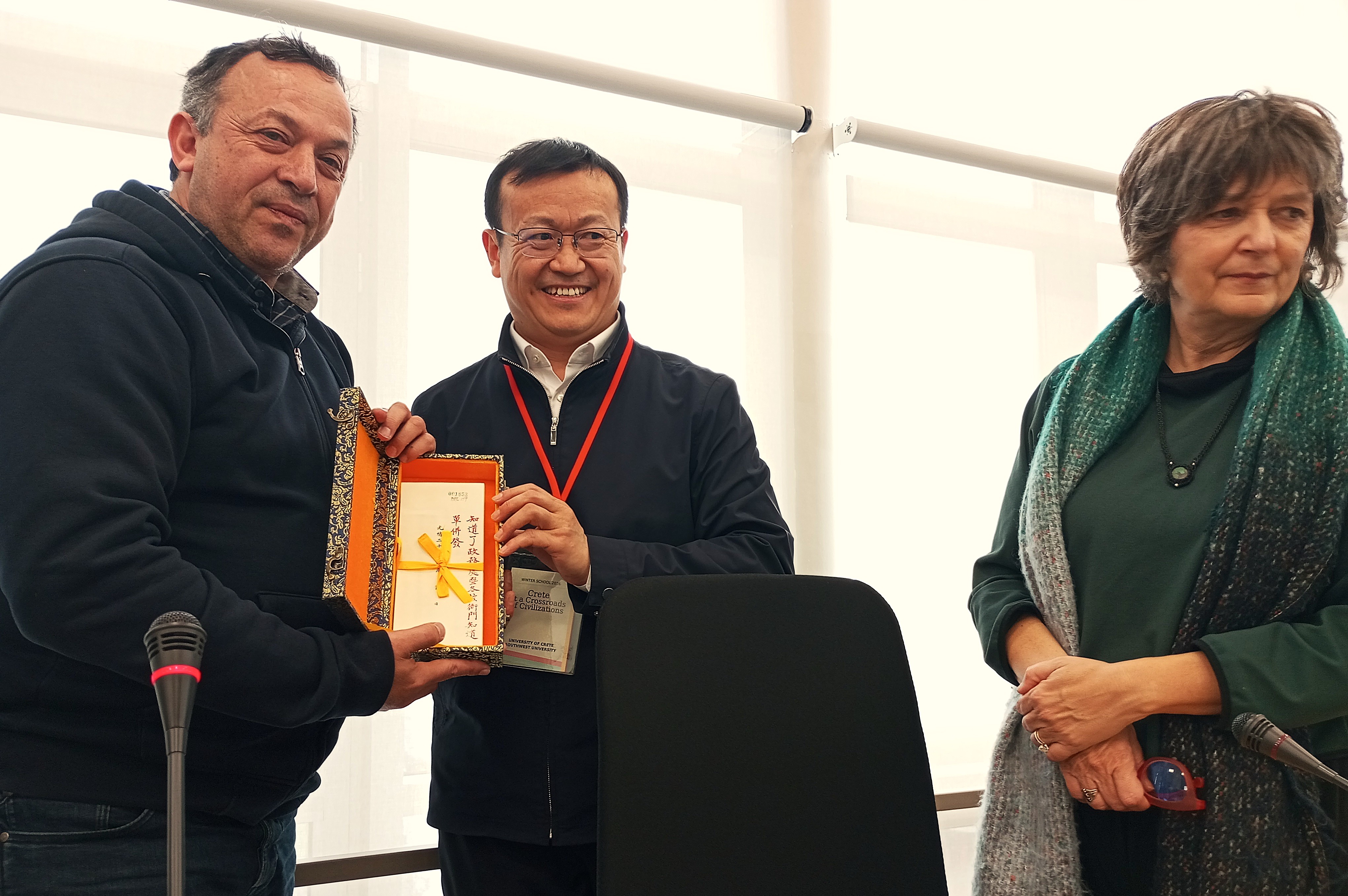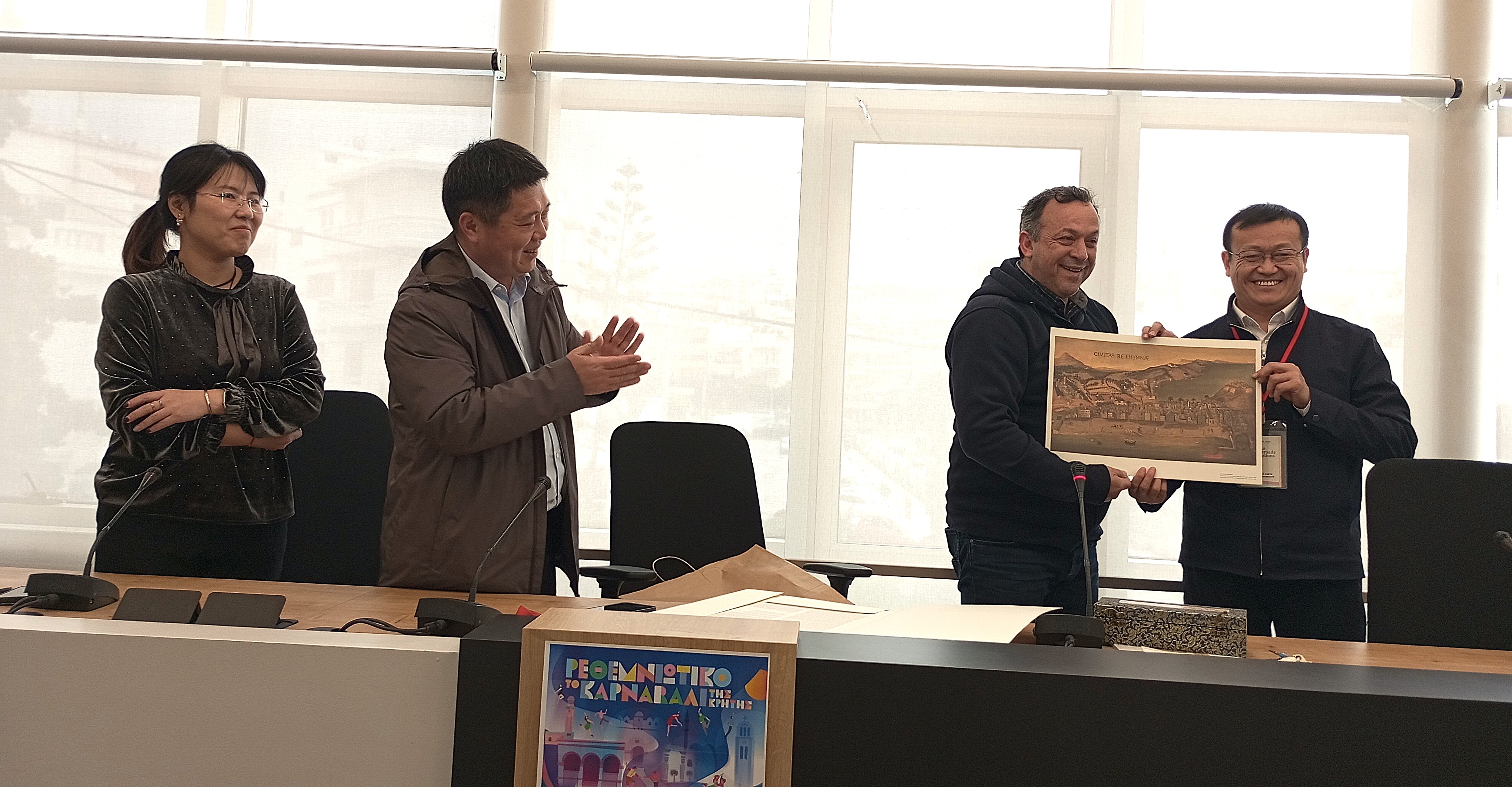 Η επίσκεψη ολοκληρώθηκε με ανταλλαγή αναμνηστικών δώρων και ευχών για συνέχιση της εξαιρετικής συνεργασίας μεταξύ του Δήμου Ρεθύμνης, του Κέντρου Αρχαίου Ελληνικού και Κινεζικού Πολιτισμού και των πανεπιστημιακών ιδρυμάτων που συμμετέχουν στα προγράμματα του.