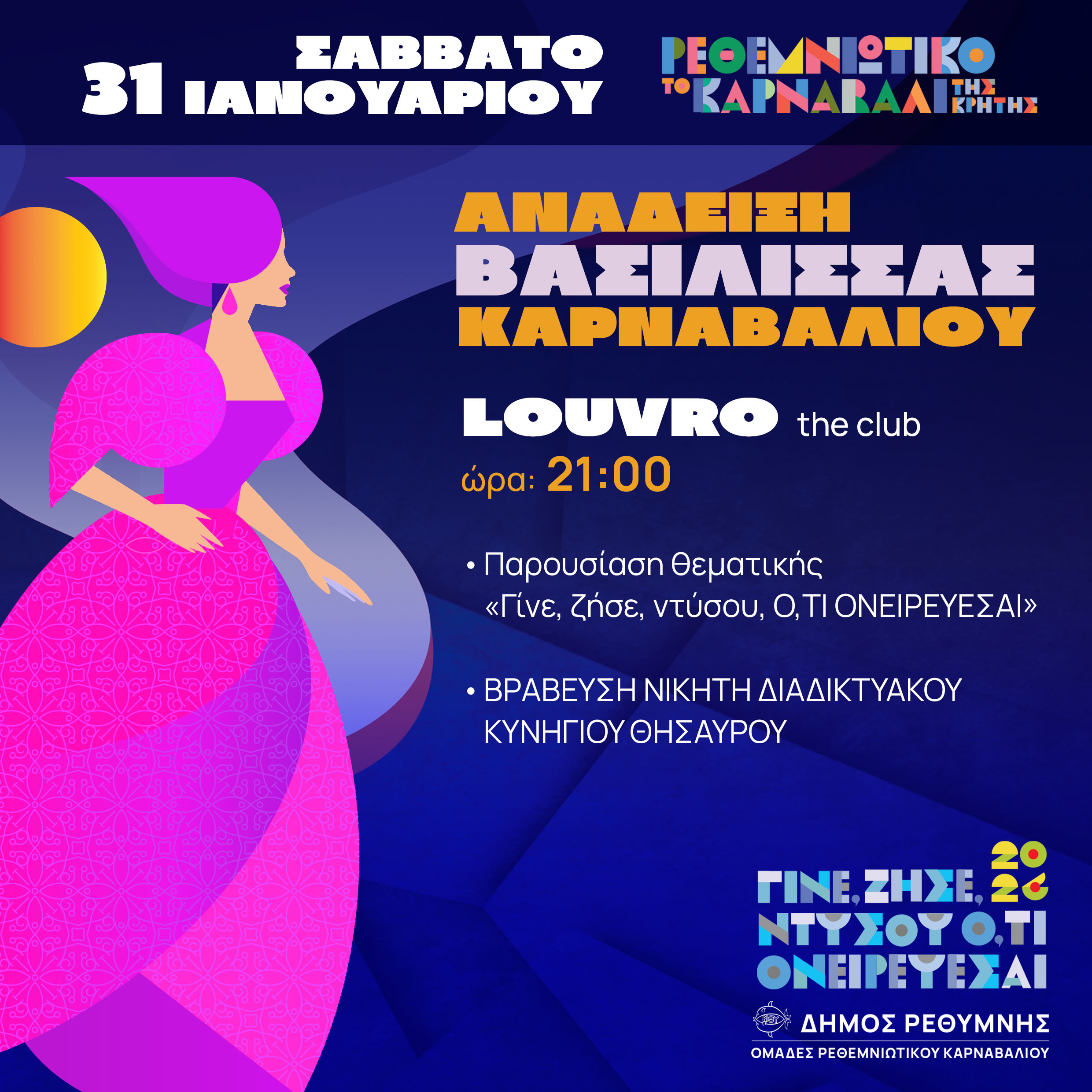 LOUVRO the Club / ΑΝΑΔΕΙΞΗ ΒΑΣΙΛΙΣΣΑΣ /Παρουσίαση θεματικής «Γίνε, ζήσε, ντύσου, Ο,ΤΙ ΟΝΕΙΡΕΥΕΣΑΙ» / ΒΡΑΒΕΥΣΗ ΝΙΚΗΤΗ ΔΙΑΔΙΚΤΥΑΚΟΥ ΚΥΝΗΓΙΟΥ ΘΗΣΑΥΡΟΥ