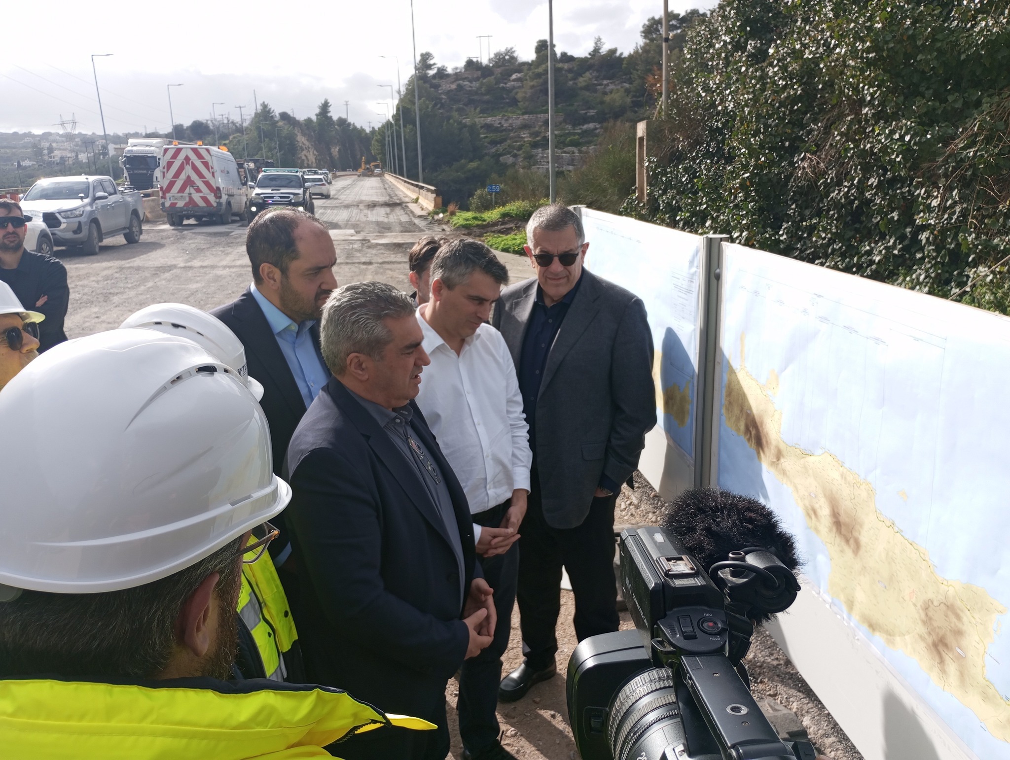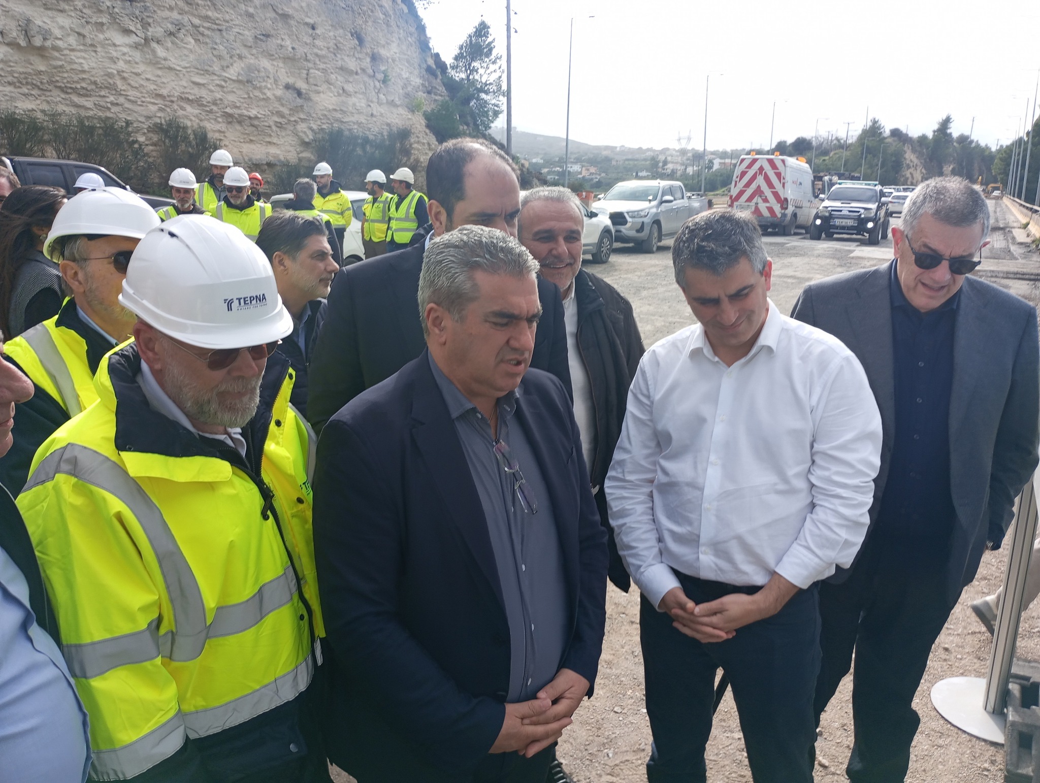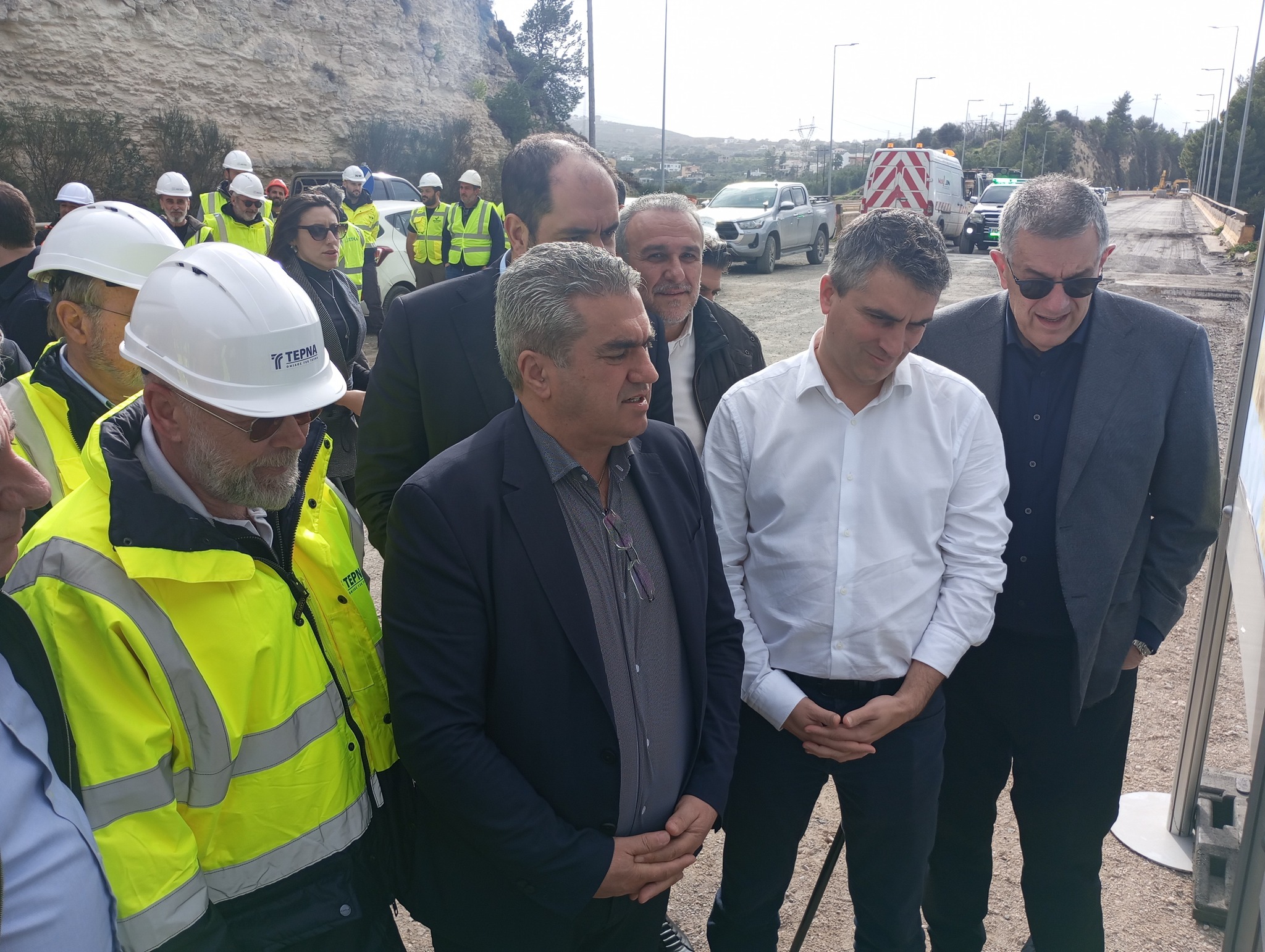 Ο Υπουργός Υποδομών και Μεταφορών Χρίστος Δήμας, ο Υφυπουργός Υποδομών και Μεταφορών Νίκος Ταχιάος και ο Γενικός Γραμματέας Υποδομών Δημήτρης Αναγνώπουλος επιθεώρησαν τα έργα στην παράκαμψη Ρεθύμνου του Β.Ο.Α.Κ. μαζί με τον Υπουργό Κλιματικής Κρίσης και πολιτικής προστασίας, Βουλευτή Ρεθύμνου Γιάννη Κεφαλογιάννη και τον Περιφερειάρχη Κρήτης Σταύρο Αρναουτάκη. Παρέστησαν επίσης ο Αντιπεριφερειάρχης Κρήτης Μιχάλης Βάμβουκας και ο Πρόεδρος του Ο.Α.Κ. Θοδωρής Νίνος.