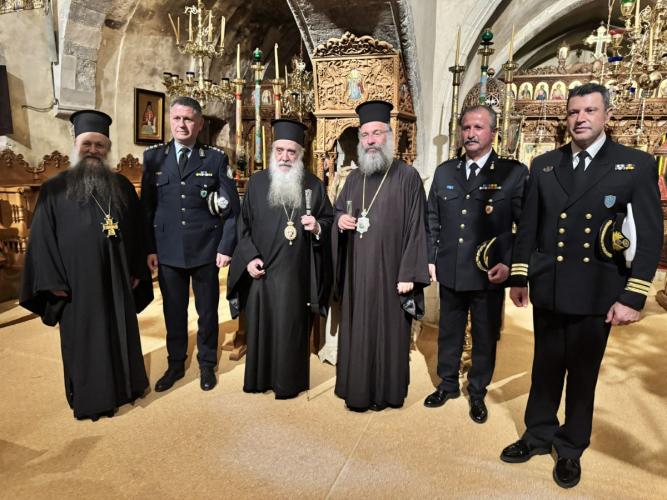 Κατά τη διάρκεια της εόρτιας τράπεζας αφίχθη στην Ιερά Μονή και ο Σεβασμιώτατος Μητροπολίτης Σάμου και Ικαρίας κ. Ευσέβιος, ο οποίος κατέκλεισε το μοναστηριακό δείπνο με καρδιακούς και διδακτικούς λόγους.