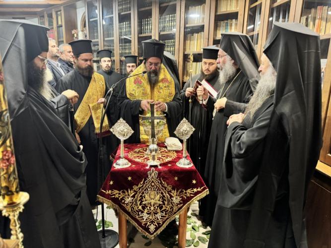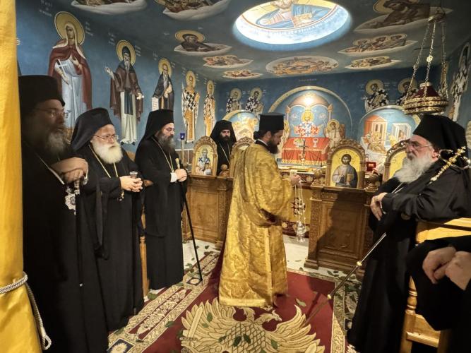 Την Ακολουθία των Ιερών Θυρανοιξίων τέλεσε ο Σεβασμιώτατος Μητροπολίτης Πέτρας και Χερρονήσου κ. Γεράσιμος, ενώ στον Εσπερινό που ακολούθησε χοροστάτησε ο Σεβασμιώτατος Αρχιεπίσκοπος Κρήτης κ. Ευγένιος, συμπροσευχομένου και του Σεβασμιωτάτου Μητροπολίτου Ιεραπύτνης και Σητείας κ. Κυρίλλου.