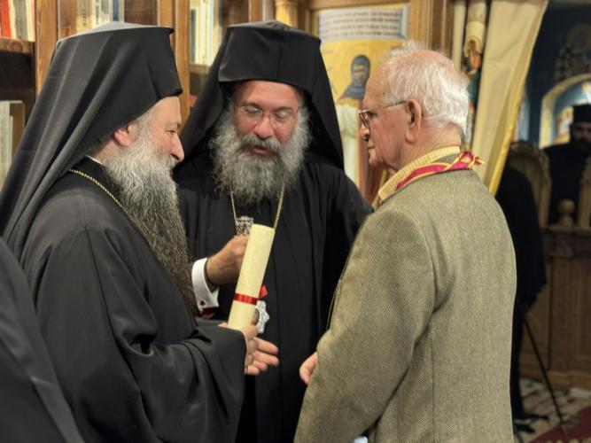 Επίσης, ο Σεβασμιώτατος Ποιμενάρχης κ. Πρόδρομος περικόσμησε με την Ανωτάτη Τιμητική Διάκριση της Ιεράς Μητροπόλεως Ρεθύμνης και Αυλοποτάμου, ήτοι τον Σταυρό των Αγίων Τεσσάρων Μαρτύρων, τον Εντιμολ. Άρχοντα κ. Μιχαήλ Τρούλη, αναγνωρίζοντας, με τον τρόπο αυτό, την πολύχρονη και σταθερή προσφορά του στην Τοπική των Ρεθυμνίων Εκκλησία και την πολλή του αγάπη προς την Ιερά Μονή Τιμίου Προδρόμου Ατάλης-Μπαλή.