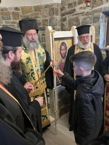 Των Ιερών Θυρανοιξίων ακολούθησε ο Αρχιερατικός Εσπερινός της Εορτής του Αγίου Χαραλάμπους, προ του πέρατος του οποίου ο Σεβασμιώτατος ευχαρίστησε τους κτήτορες του Ναού, την Οικογένεια Χαραλάμπους Κιαγιά, όλους τους παρισταμένους, τον Δήμαρχο Μυλοποτάμου κ. Γεώργιο Κλάδο, Αντιδημάρχους, Περιφερειακούς και Δημοτικούς Συμβούλους, καθώς και τους πολυπληθείς προσκυνητές που προσήλθαν για να μετάσχουν της χαράς αυτής.