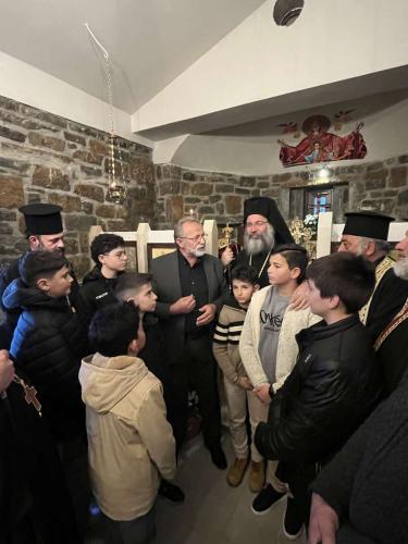 Ο Σεβασμιώτατος ευχήθηκε όλοι μας να διακρατούμε πάντοτε τα μηνύματα των Αγίων και των ηρώων μας, καθώς αυτοί κρατούν όρθιο τον τόπο, όπως σημείωσε, και χαιρέτισε ιδιαίτερα τη συμμετοχή πολλών μικρών παιδιών, προς τα οποία, όπως τόνισε, οφείλομε να γινόμαστε πάντοτε καλό και φωτεινό παράδειγμα με τη ζωή και τους λόγους μας.