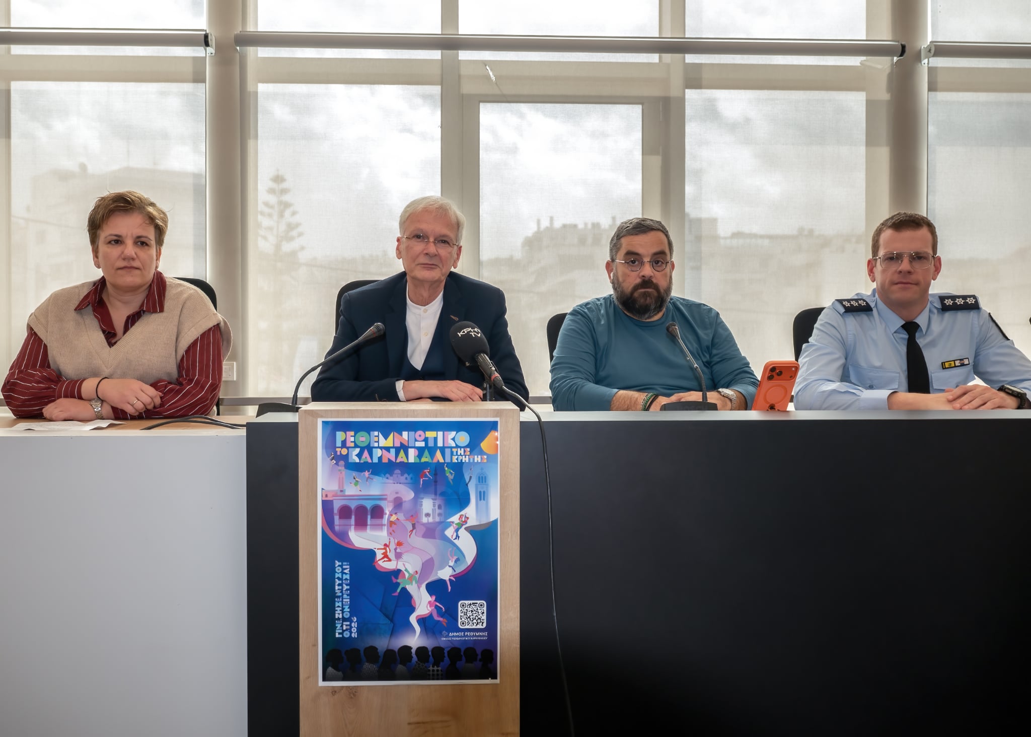 «Εκ μέρους της Περιφέρειας Κρήτης σας καλωσορίσω και να σας ευχαριστήσω για την παρουσία σας στη σημερινή συνέντευξη Τύπου, που σηματοδοτεί και φέτος την έναρξη μιας από τις πιο ζωντανές, χαρούμενες και εξωστρεφείς διοργανώσεις του τόπου μας: το Ρεθεμνιώτικο Καρναβάλι.