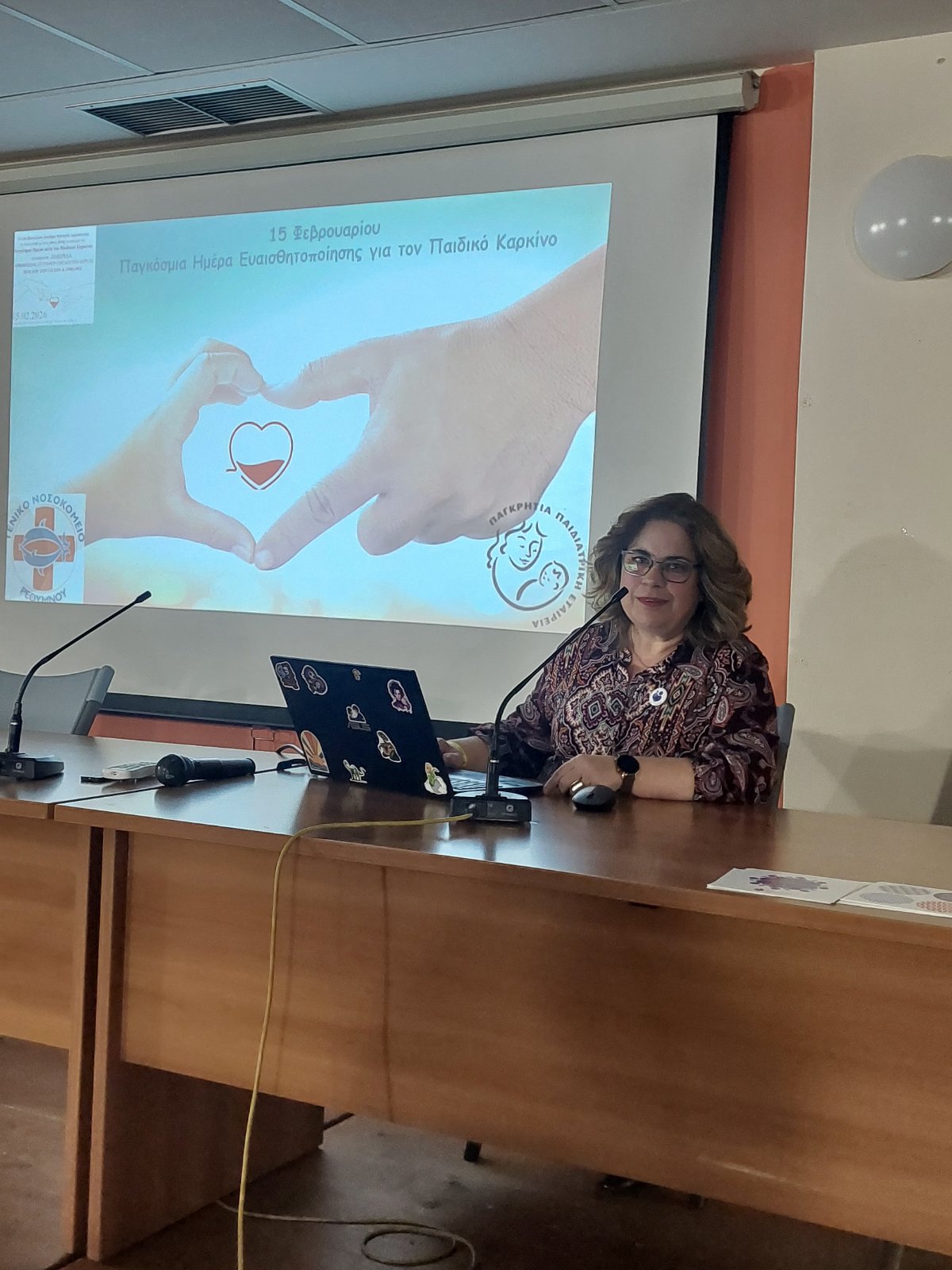Ιδιαίτερα συγκλονιστική ήταν η ομιλία της Διευθύντριας της Παιδιατρικής Κλινικής του Γενικού Νοσοκομείου Ρεθύμνου και Προέδρου της Παγκρήτιας Παιδιατρικής Εταιρείας, κας Ελισάβετ Γιαννούση. Με επιστημονική πληρότητα, αλλά κυρίως με βαθιά ανθρώπινη ευαισθησία, μετέφερε την πραγματικότητα του παιδικού καρκίνου ,τα είδη , την αντιμετώπιση και τι βιώνουν τα παιδιά που δίνουν τη μάχη με τον καρκίνο και οι οικογένειές τους.