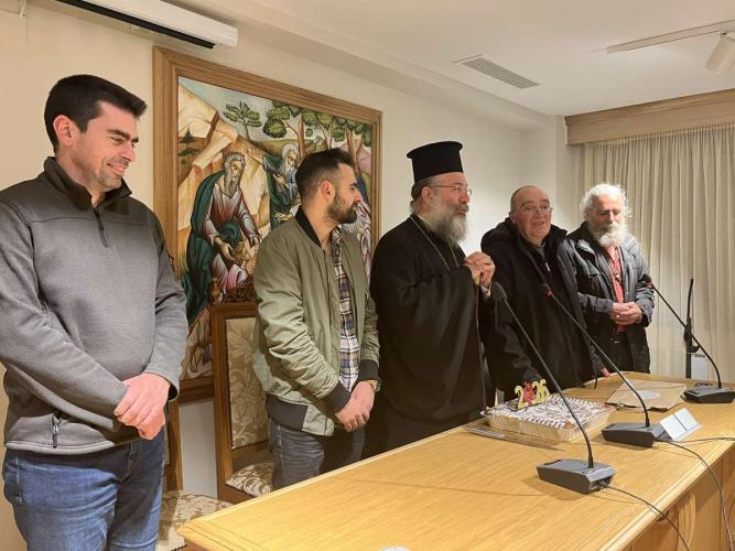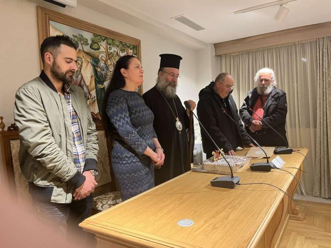 Ο Σεβασμιώτατος αναφέρθηκε στα χαρίσματα του κ. Γεωργίου Καλογεράκη, καθώς και όλων των επίλεκτων μελών, παλαιότερων και νεώτερων, της Θεατρικής Ομάδας, τα οποία αξιοποιούν επ’ αγαθώ της Εκκλησίας. Επίσης, ο Επίσκοπός μας ιδιαίτερα αναφέρθηκε στην παραγωγή, αυτή τη χρονιά, της ταινίας με τη ζωή του Αγίου ενδόξου Αποστόλου Τίτου, πρώτου Επισκόπου Κρήτης, με αφορμή τη συμπλήρωση 60 ετών από την επανακομιδή της Τιμίας Κάρας του από τη Βενετία στη Μεγαλόνησο Κρήτη.