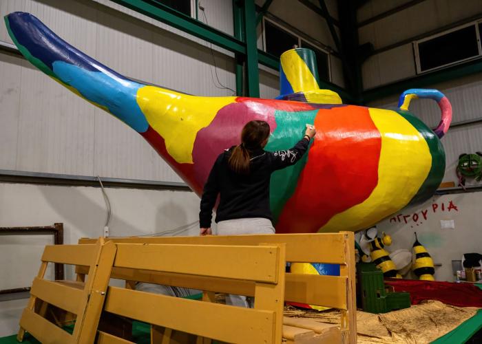 Λίγο πριν την κορύφωση των φετινών Καρναβαλικών εκδηλώσεων στις αποθήκες κατασκευής των αρμάτων επικρατεί δημιουργικός «πυρετός»!