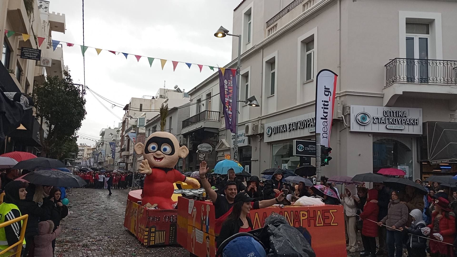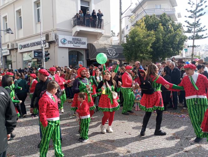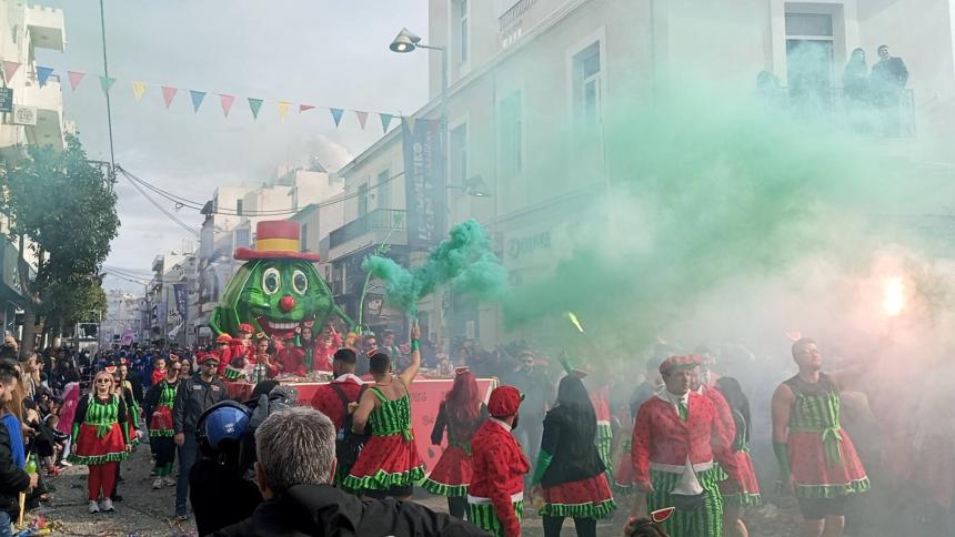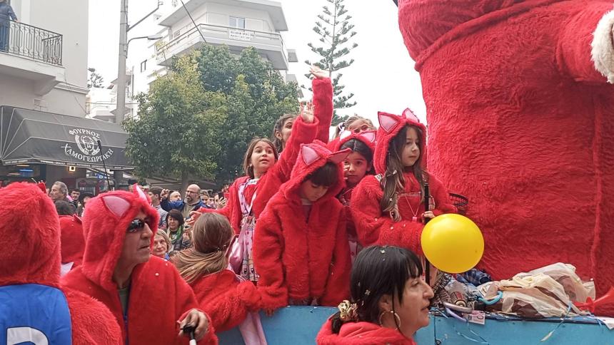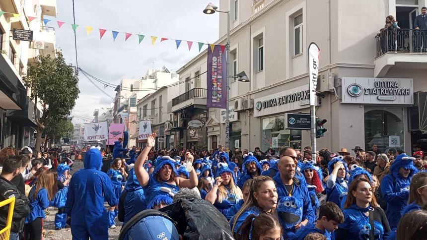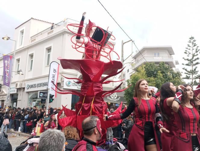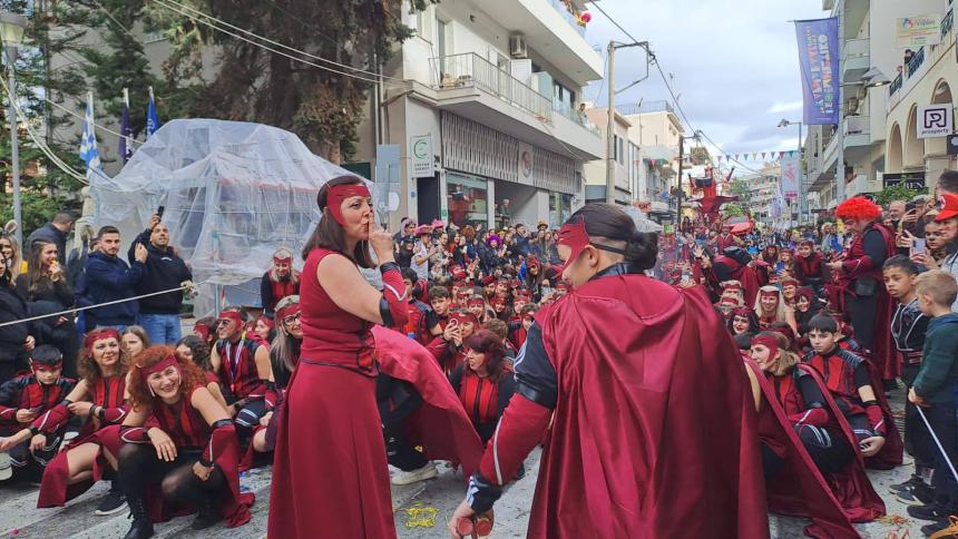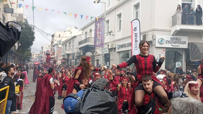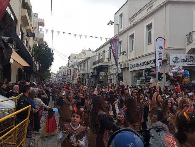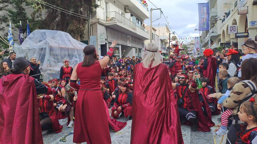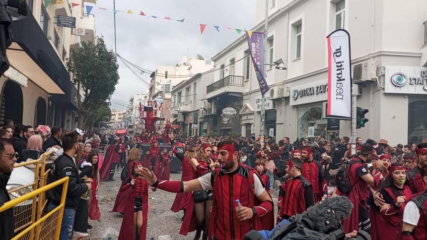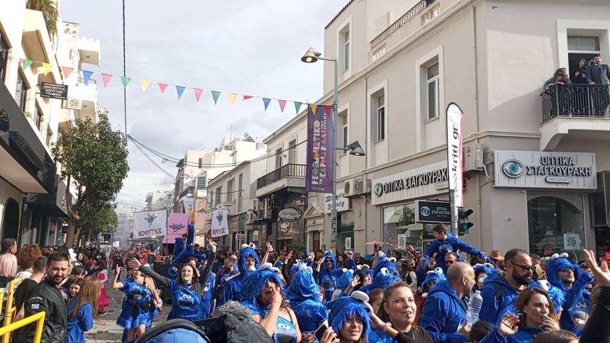 Η καρναβαλική παρέλαση συνεχίζεται με έντονους ρυθμούς και το Ρέθυμνο γιορτάζει τη μεγάλη γιορτή της Αποκριάς, ζώντας στιγμές συλλογικού ξεφαντώματος. Οι δρόμοι της πόλης έχουν γεμίσει χρώματα, μουσική και χορό.