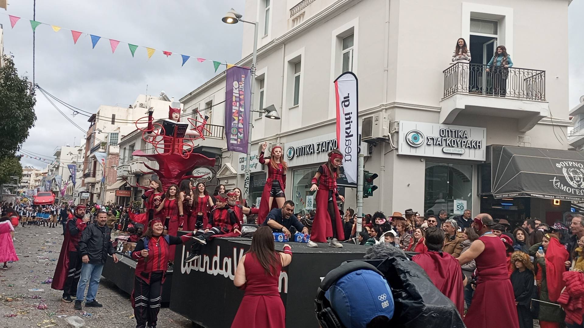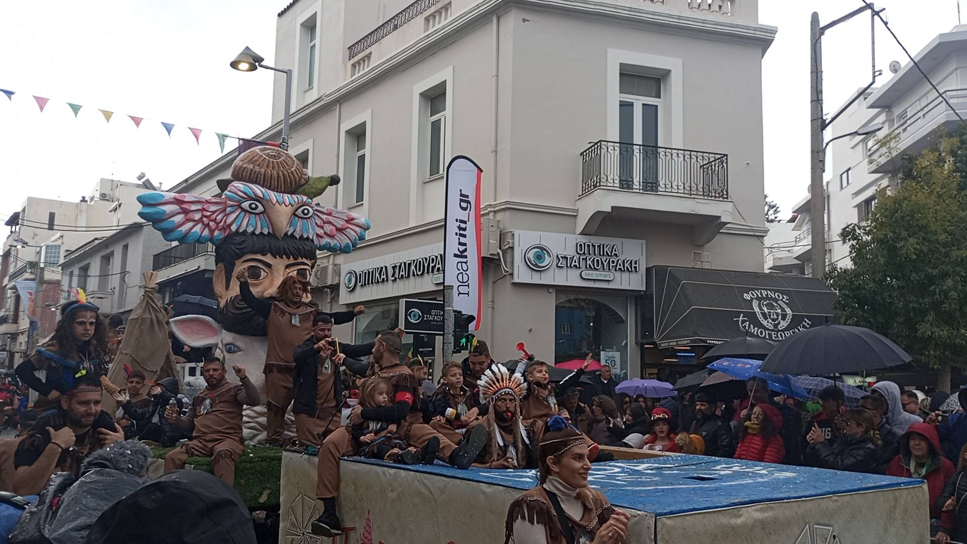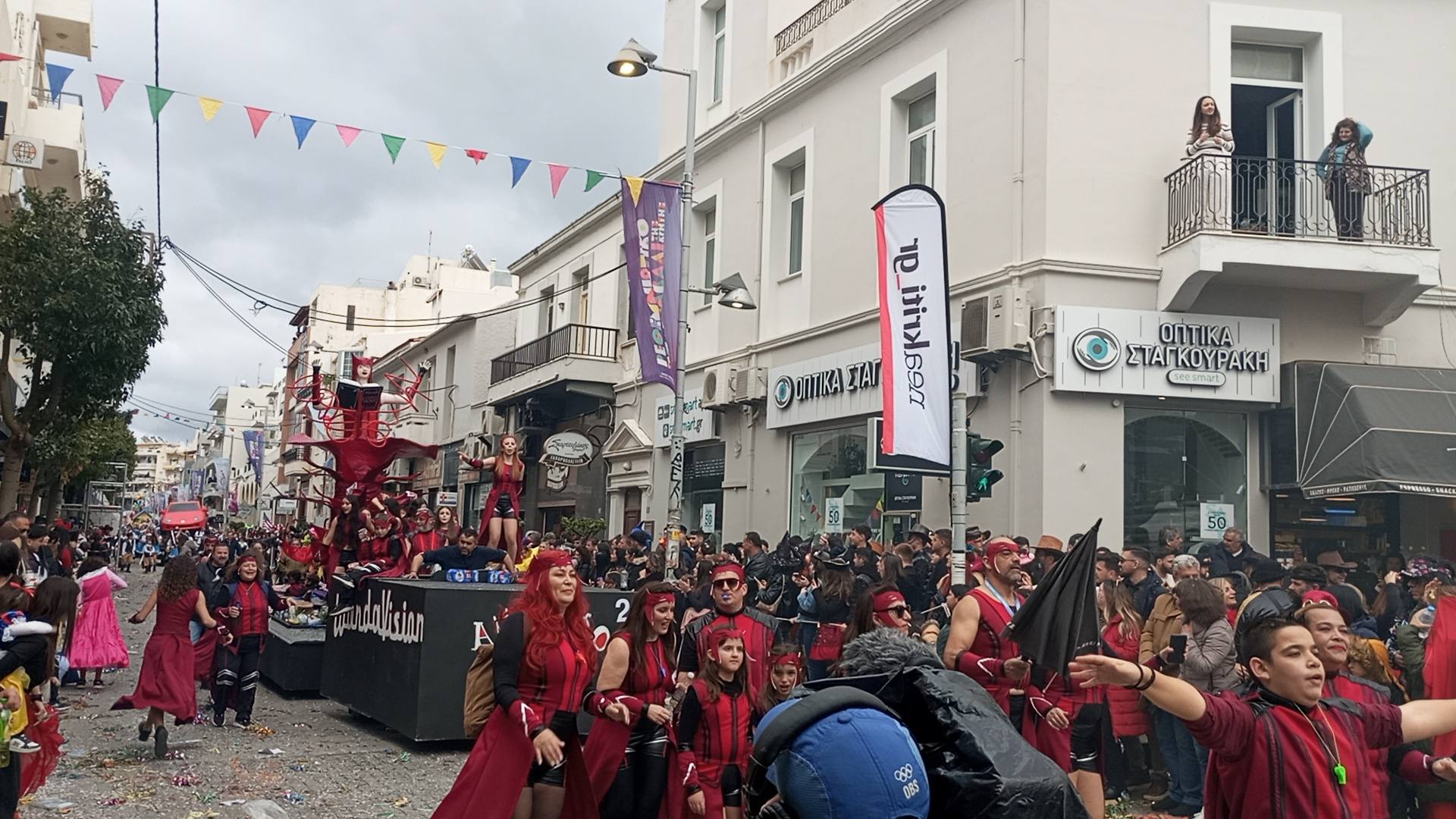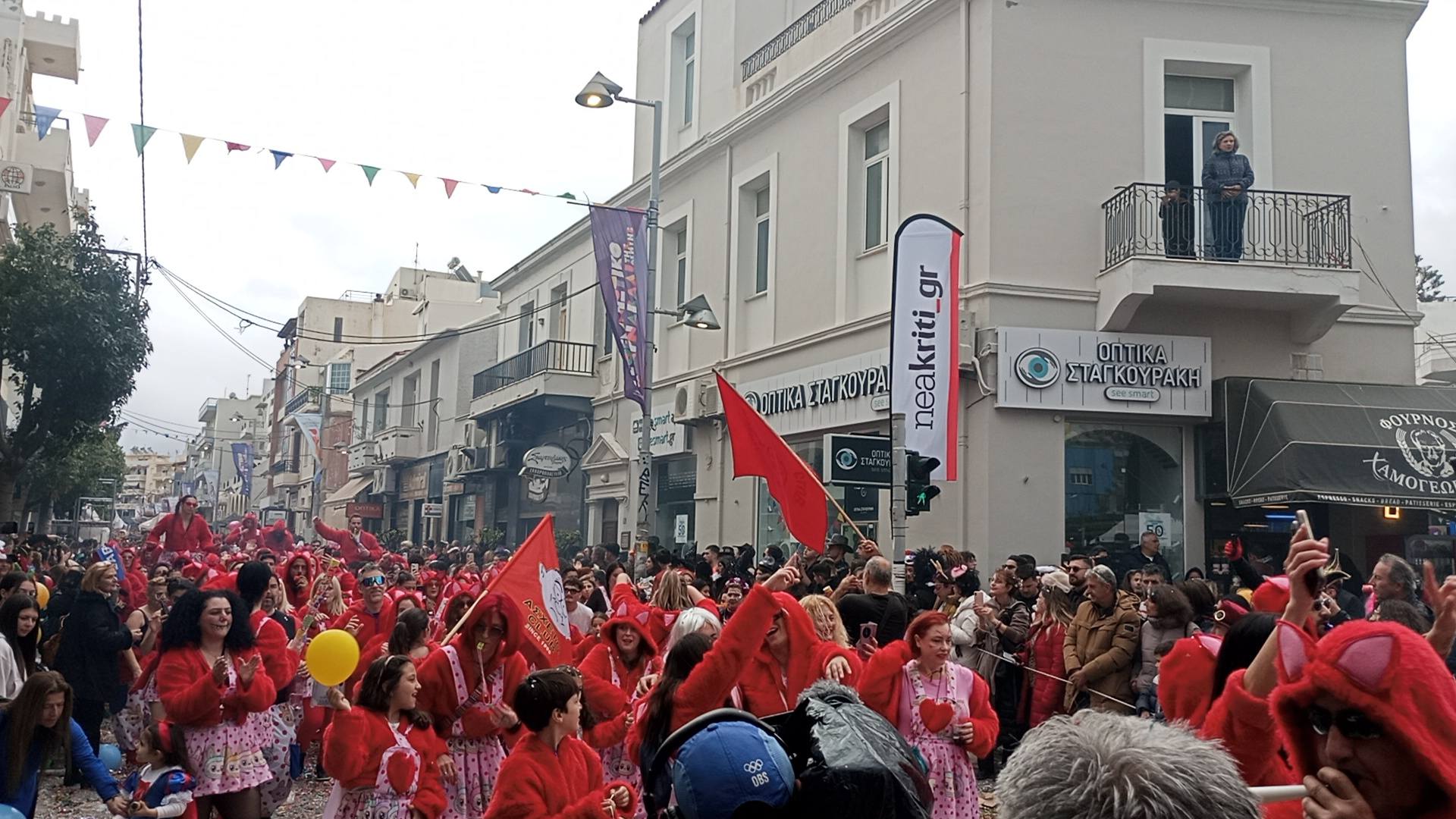 Η καρναβαλική παρέλαση συνεχίζεται με έντονους ρυθμούς και το Ρέθυμνο γιορτάζει τη μεγάλη γιορτή της Αποκριάς, ζώντας στιγμές συλλογικού ξεφαντώματος. Οι δρόμοι της πόλης έχουν γεμίσει χρώματα, μουσική και χορό.