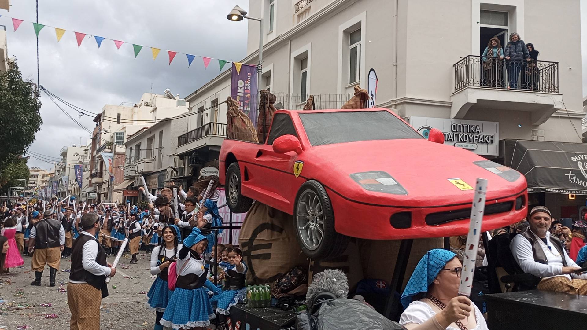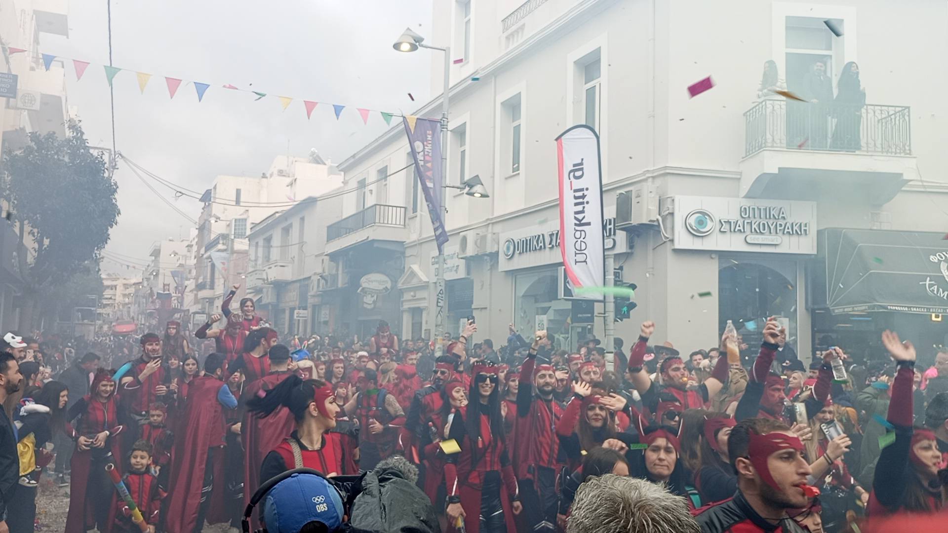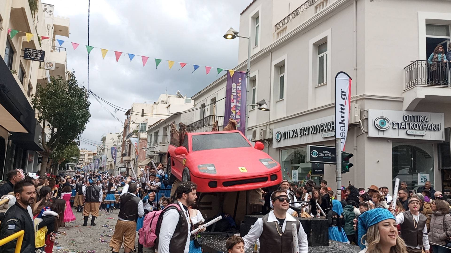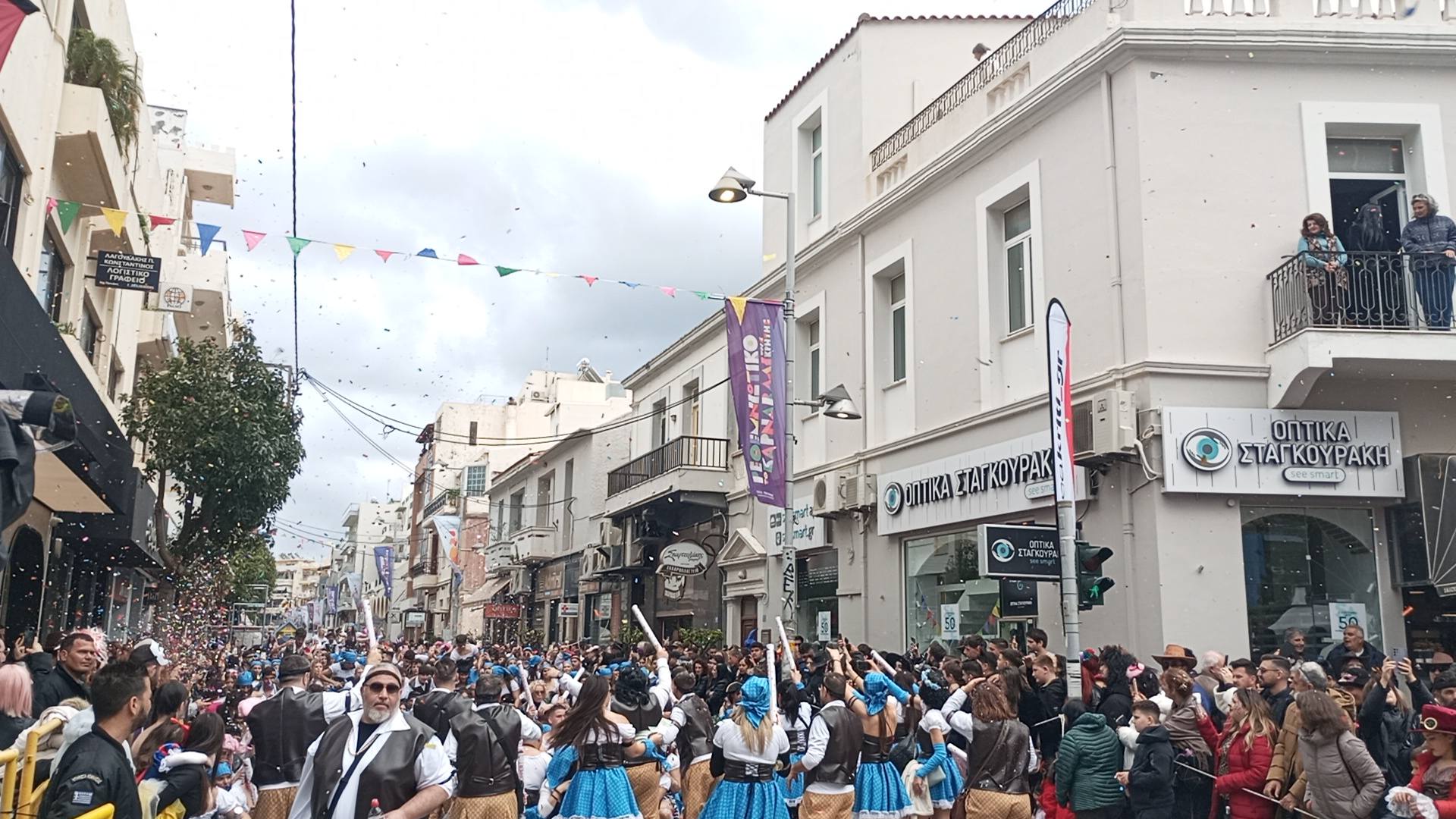 Η καρναβαλική παρέλαση συνεχίζεται με έντονους ρυθμούς και το Ρέθυμνο γιορτάζει τη μεγάλη γιορτή της Αποκριάς, ζώντας στιγμές συλλογικού ξεφαντώματος. Οι δρόμοι της πόλης έχουν γεμίσει χρώματα, μουσική και χορό.