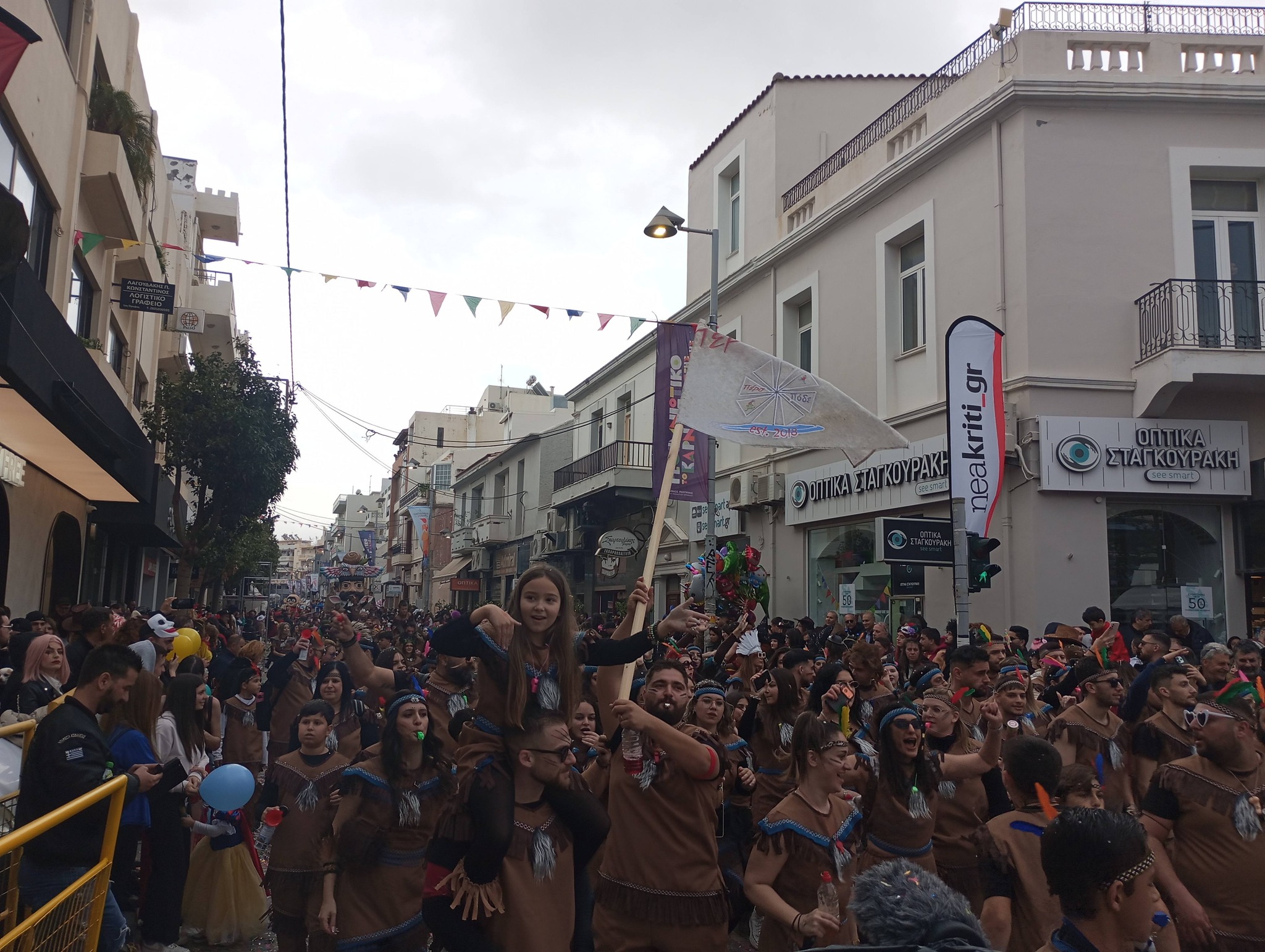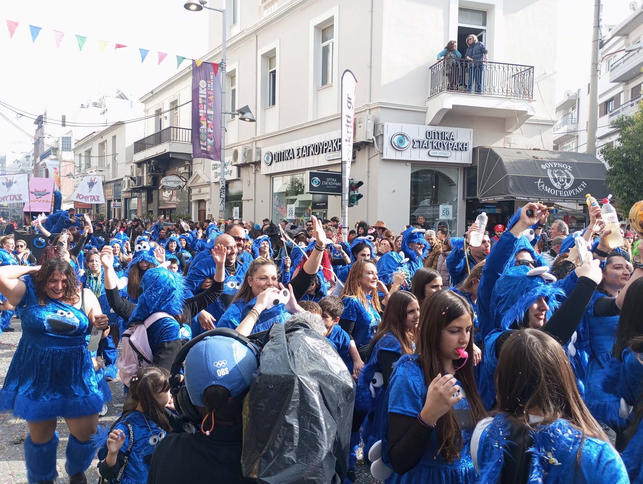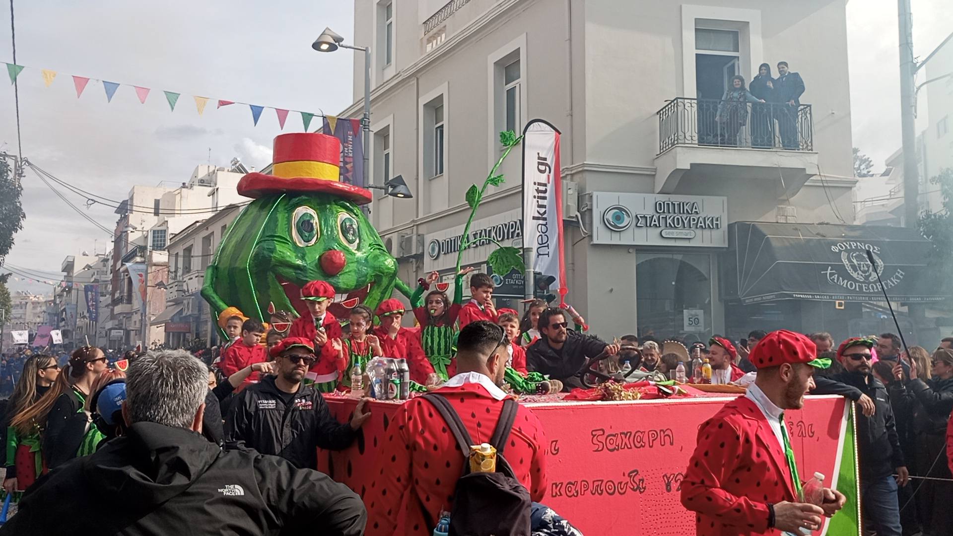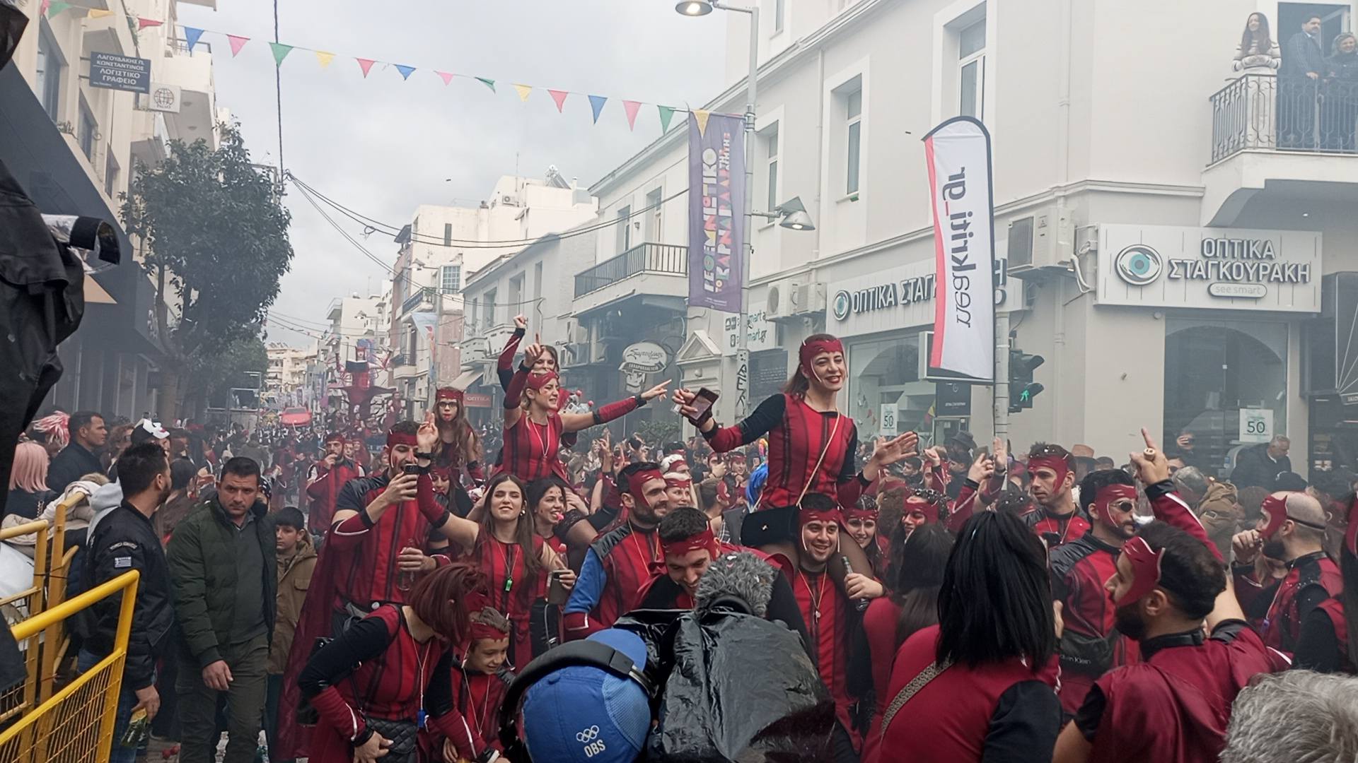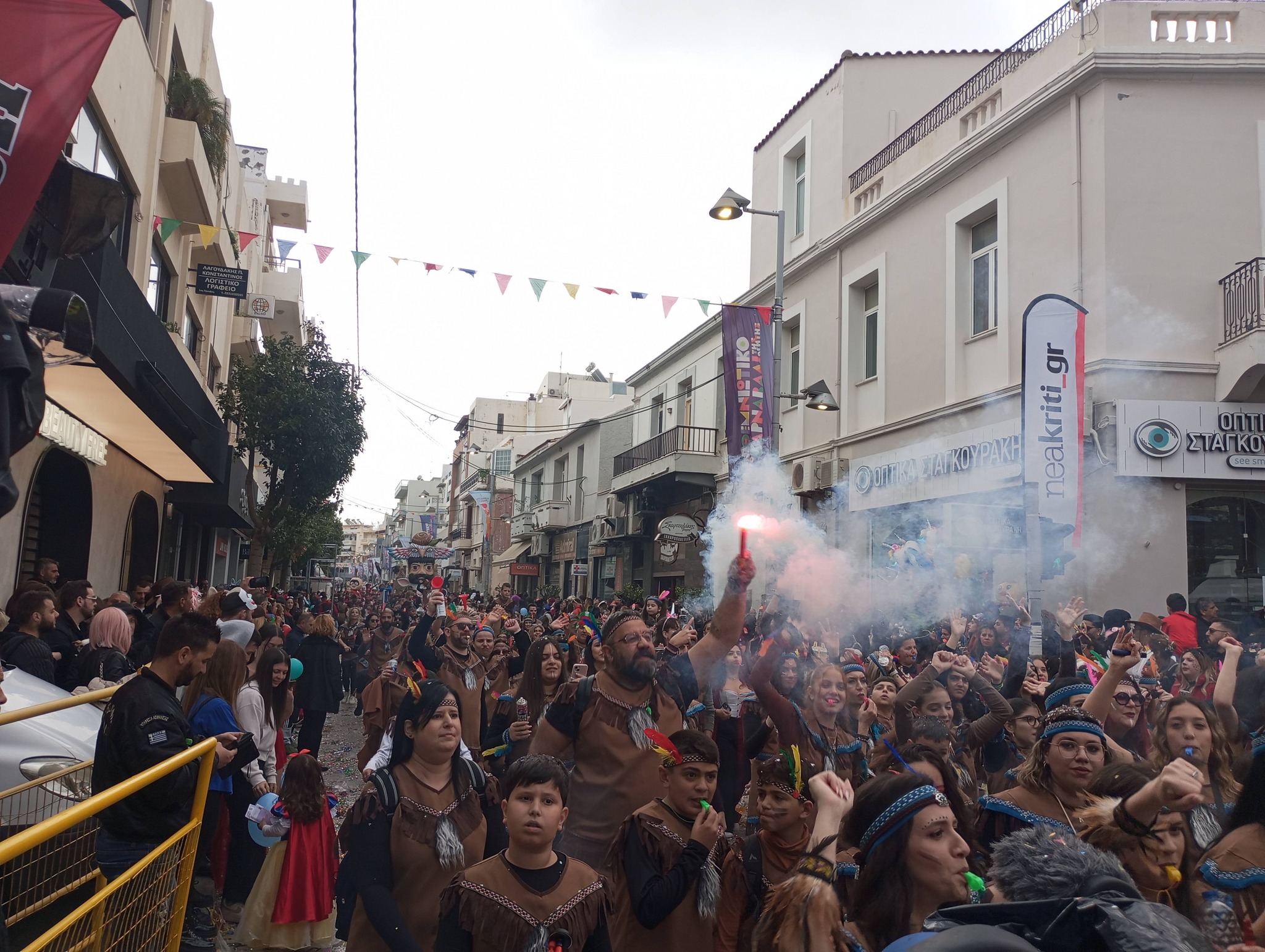 Η καρναβαλική παρέλαση συνεχίζεται με έντονους ρυθμούς και το Ρέθυμνο γιορτάζει τη μεγάλη γιορτή της Αποκριάς, ζώντας στιγμές συλλογικού ξεφαντώματος. Οι δρόμοι της πόλης έχουν γεμίσει χρώματα, μουσική και χορό.