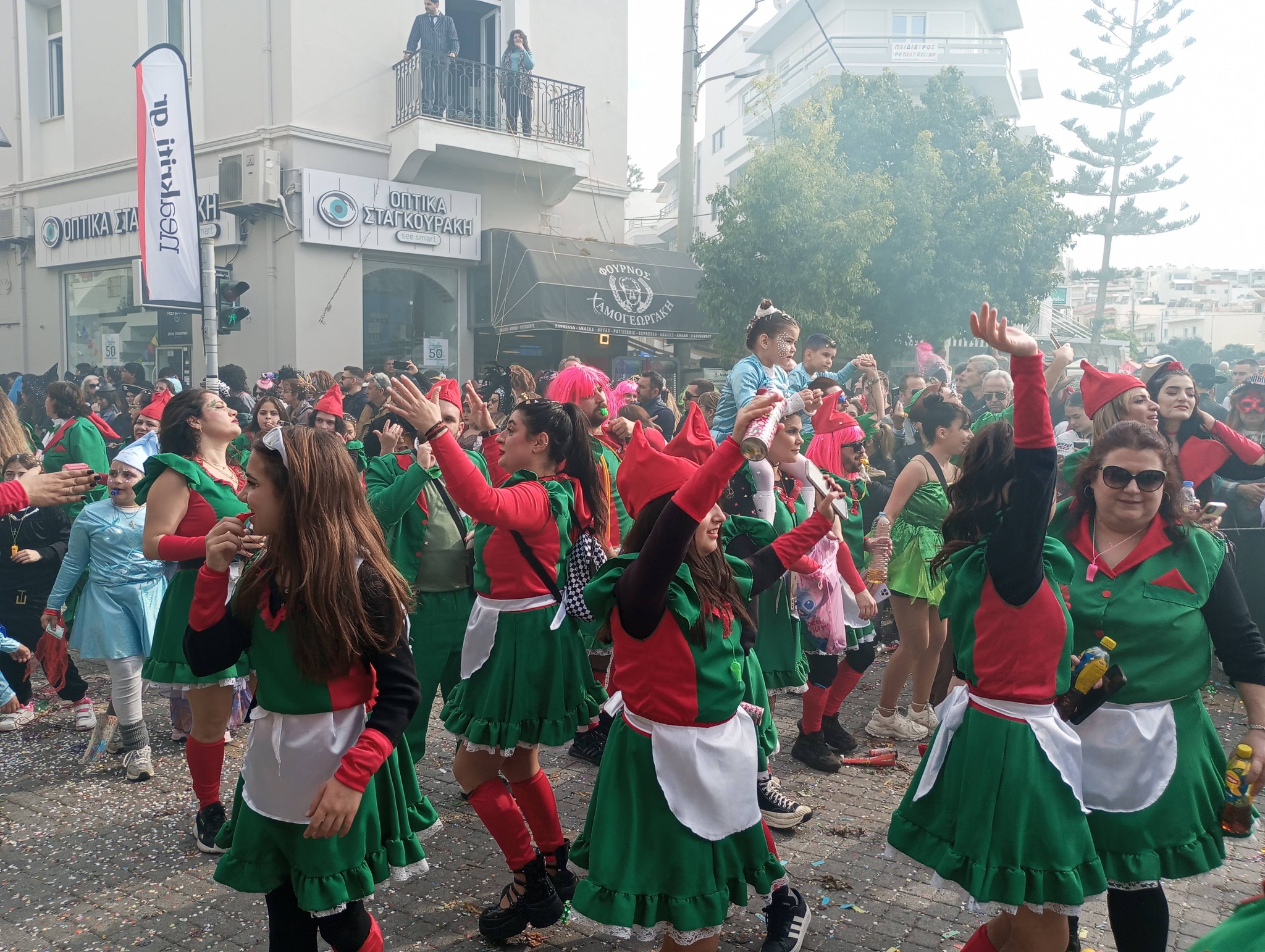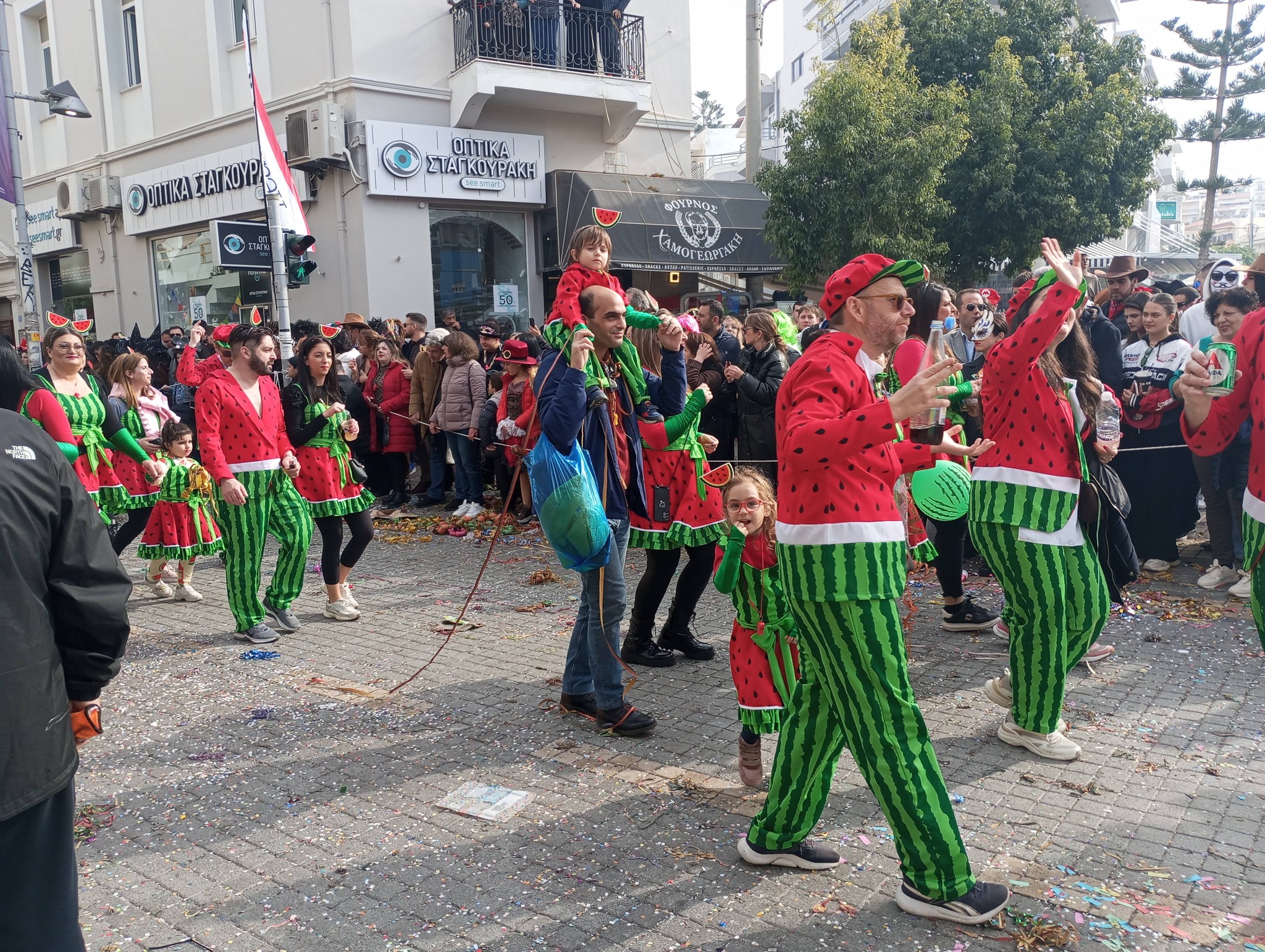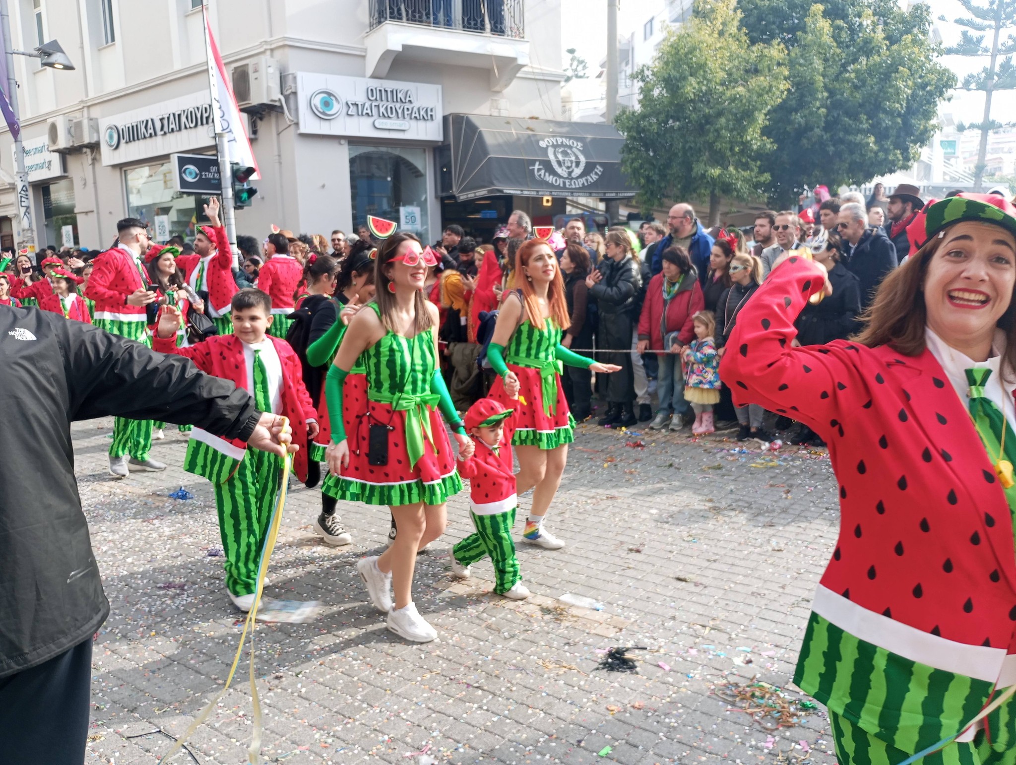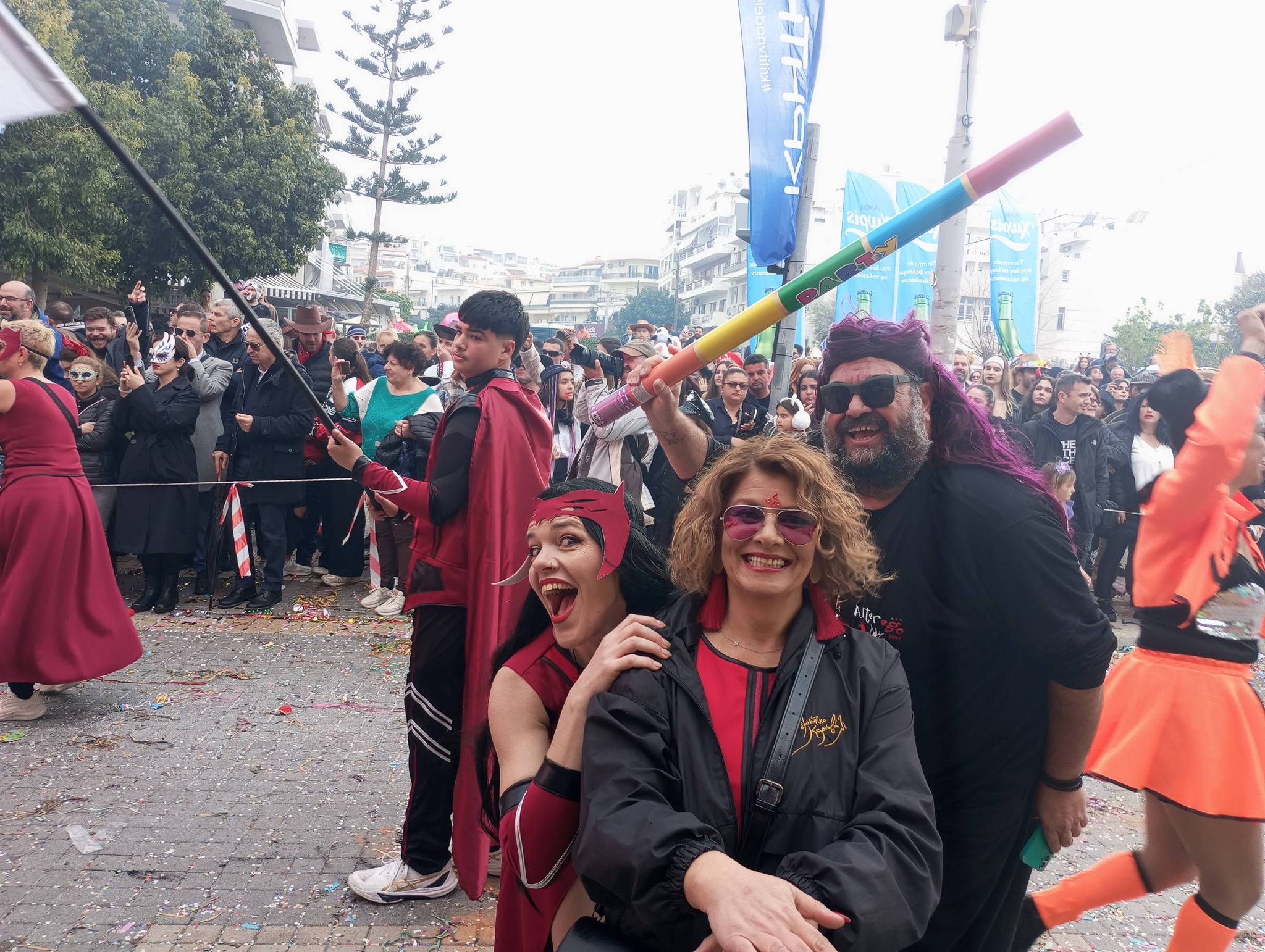 Η καρναβαλική παρέλαση συνεχίζεται με έντονους ρυθμούς και το Ρέθυμνο γιορτάζει τη μεγάλη γιορτή της Αποκριάς, ζώντας στιγμές συλλογικού ξεφαντώματος. Οι δρόμοι της πόλης έχουν γεμίσει χρώματα, μουσική και χορό.