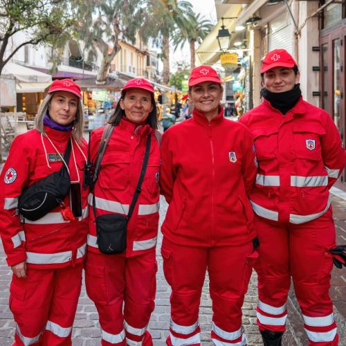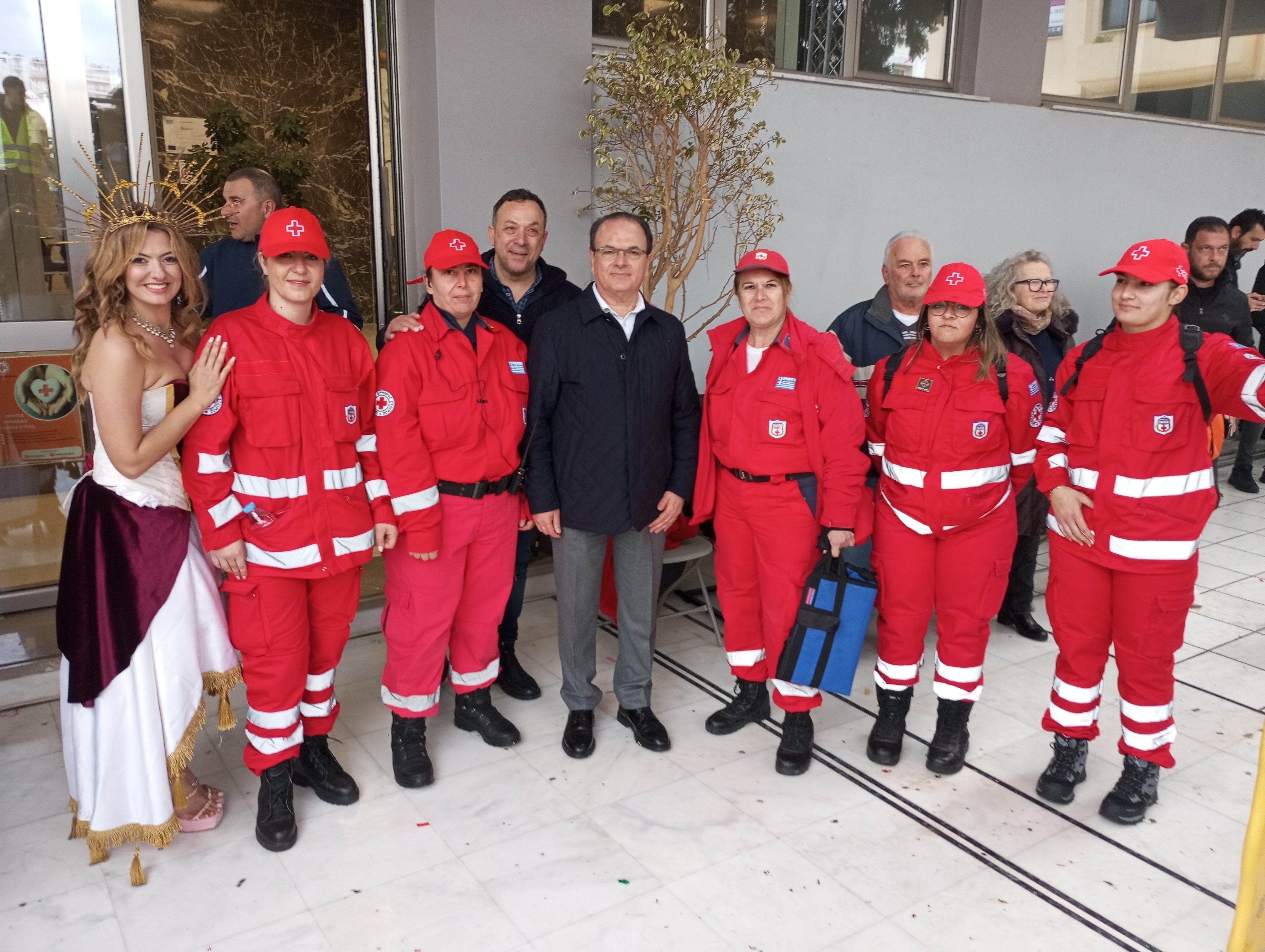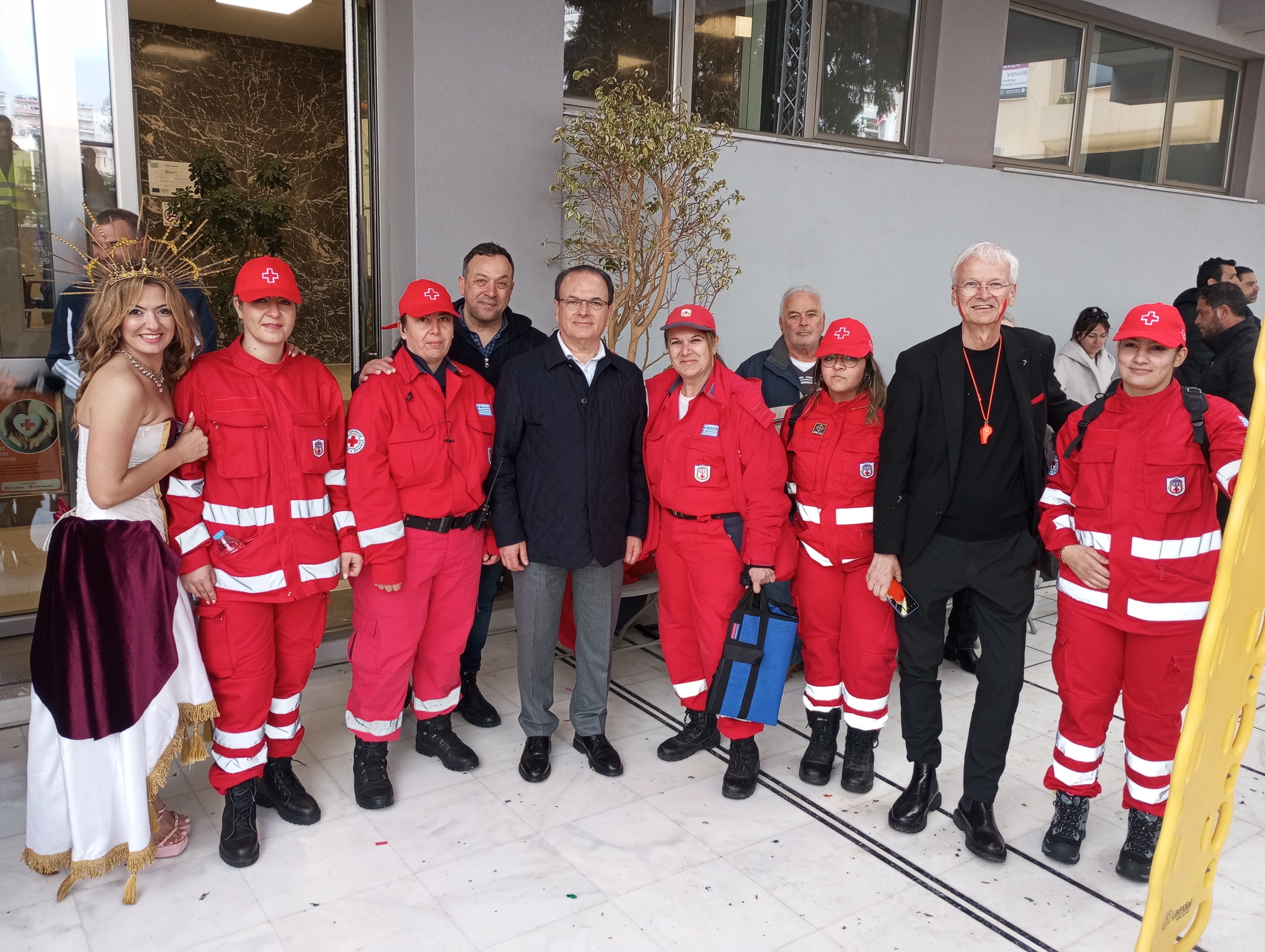 Για παράδειγμα οι άνθρωποι του Ερυθρού Σταυρού. Βρίσκονται παντού και πάντα. Ειδικά στην μεγάλη παρέλαση, περίπου, 120 εθελοντές του Ερυθρού Σταυρού ήταν σε ετοιμότητα να παρέμβουν ανά πάσα ώρα και στιγμή ενώ είχαν οργανώσει ειδικό σταθμό παροχής βοήθειας στο 3ο Γυμνάλιο - Λύκειο. Δικαίως δέχθηκαν δημοσίως τα συγχαρητήρια του δημάρχου Γιώργη Μαρινάκη και του Αντιδημάρχου Μάνου Τσάκωνα στο τέλος της καρναβαλικής φιέστας.
