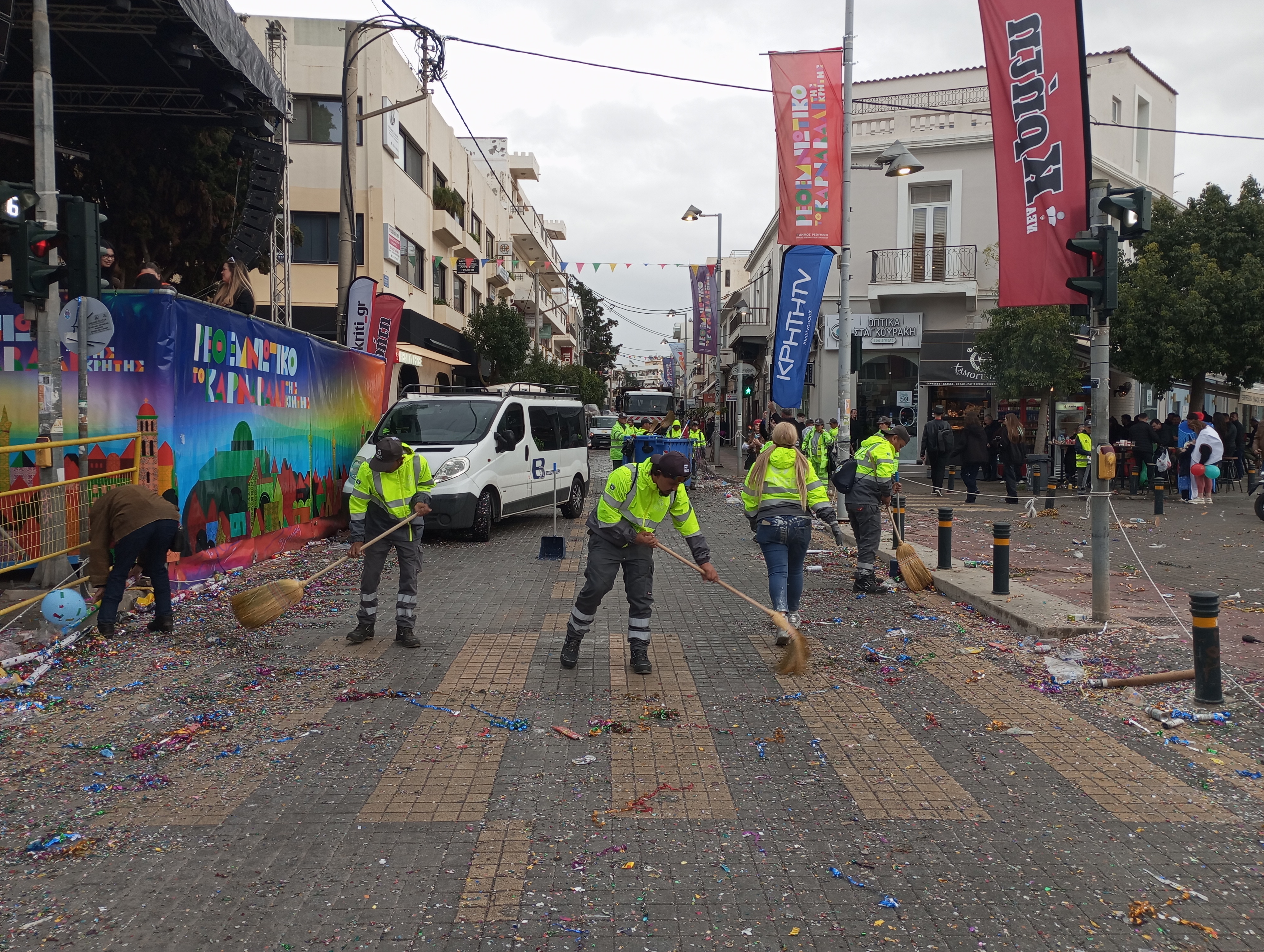 Για να βγουν άψογα οι παρελάσεις, εθελοντές καρναβαλιστές επιτηρούν την ροή τους, εργαζόμενοι του δήμου και εργάτες δουλεύουν ασταμάτητα, μια πολυάριθμη έμπειρη ομάδα τεχνικών του Κρήτη TV δούλευε τρεις ημέρες για να μεταδοθεί η εικόνα των παρελάσεων σε όλο τον κόσμο και βέβαια ποιος δεν θαυμάζει τους εργαζόμενους του Τμήματος Καθαριότητας του Δήμου Ρεθύμνης που ολόκληρο το Σαββατοκύριακο δουλεύουν ασταμάτητα για να κρατήσουν καθαρή την πόλη μας.