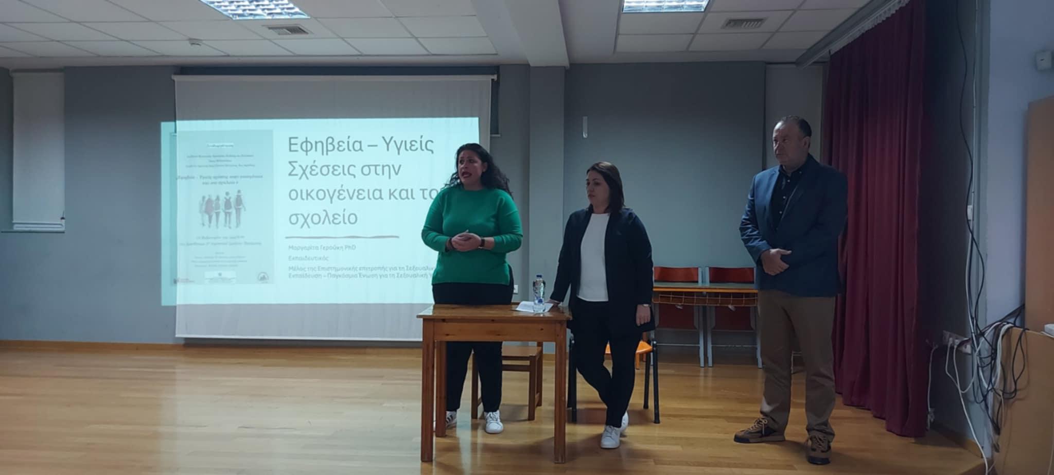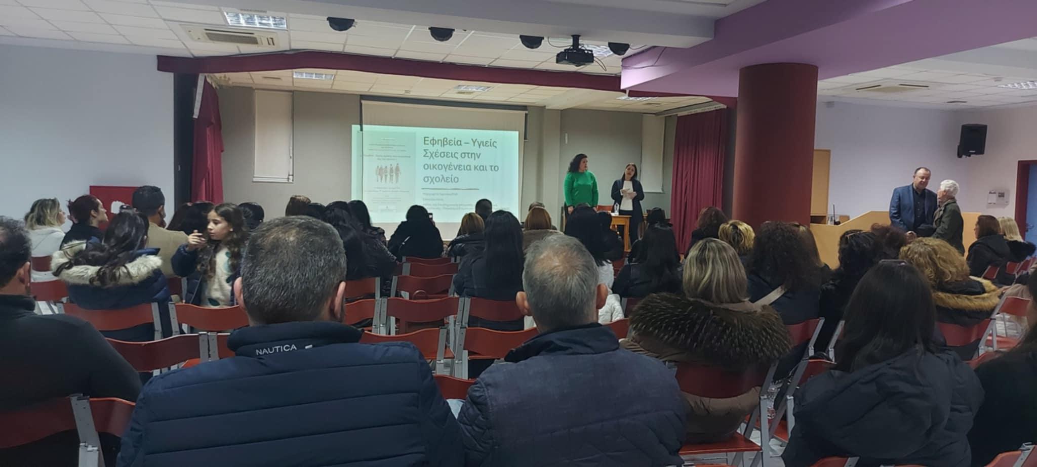 Πραγματοποιήθηκε την Τετάρτη 18 Φεβρουαρίου, στην αίθουσα εκδηλώσεων του 2ου Δημοτικού Σχολείου Περάματος ομιλία με εισηγήτρια την κα Μαργαρίτα Γερούκη (Δ/ντρια του 16ου Δημοτικού Σχολείου Ρεθύμνου, σχολική σύμβουλος Πρωτοβάθμιας, πρόεδρος Α.Ξ.Ε.Π.Τ με ειδίκευση στην σεξουαλική αγωγή, συγγραφέας με διεθνείς διακρίσεις).