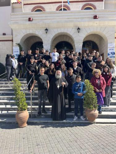 Με ιδιαίτερη χαρά ο Σεβασμιώτατος Μητροπολίτης Ρεθύμνης και Αυλοποτάμου κ. Πρόδρομος, το μεσημέρι της Πέμπτης, 26ης Φεβρουαρίου 2026, υποδέχθηκε, μαζί με τον Γενικό Αρχιερατικό Επίτροπο, Αιδεσιμολ. Πρωτ. Νικόλαο Νικηφόρο, στον Ιερό Ναό Αγίων Τεσσάρων Μαρτύρων πόλεως Ρεθύμνης, όμιλο μαθητών και καθηγητών από το Γυμνάσιο Γαζίου Ηρακλείου, οι οποίοι πραγματοποίησαν ημερήσια εκδρομή στο Ρέθυμνο.