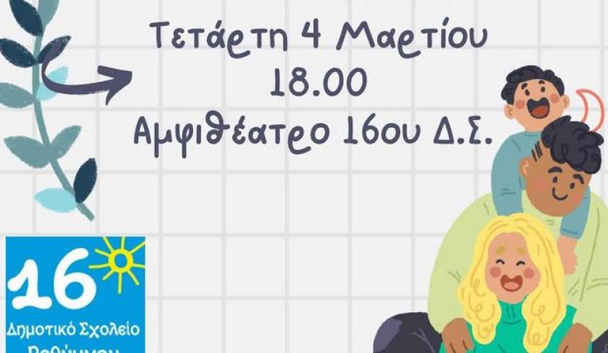 Ο Σύλλογος Γονέων και Κηδεμόνων του 16ου Δημοτικού Σχολείου Ρεθύμνου διοργανώνει μία συνάντηση με την ψυχολόγο - ψυχοθεραπεύτρια - Attached at the Heart Parent Educator, κα Άννα Λυγιά.