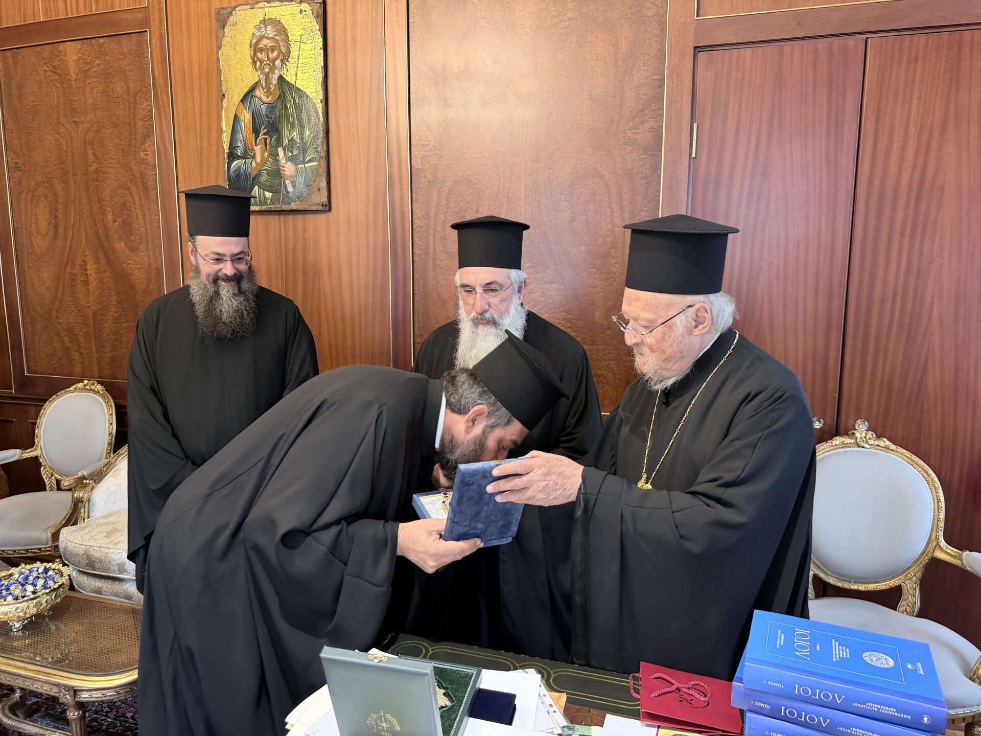 Η Α.Θ. Παναγιότης ο Οικουμενικός Πατριάρχης κ.κ. Βαρθολομαίος, δέχθηκε με στοργή και εγκαρδιότητα την Αντιπροσωπεία της Εκκλησίας της Κρήτης και ιδιαιτέρως τους δύο νέους Αρχιερείς της, οι οποίοι ζήτησαν και έλαβαν, πριν από την ενθρόνισή τους, την ευχή της Μητρός Εκκλησίας.
