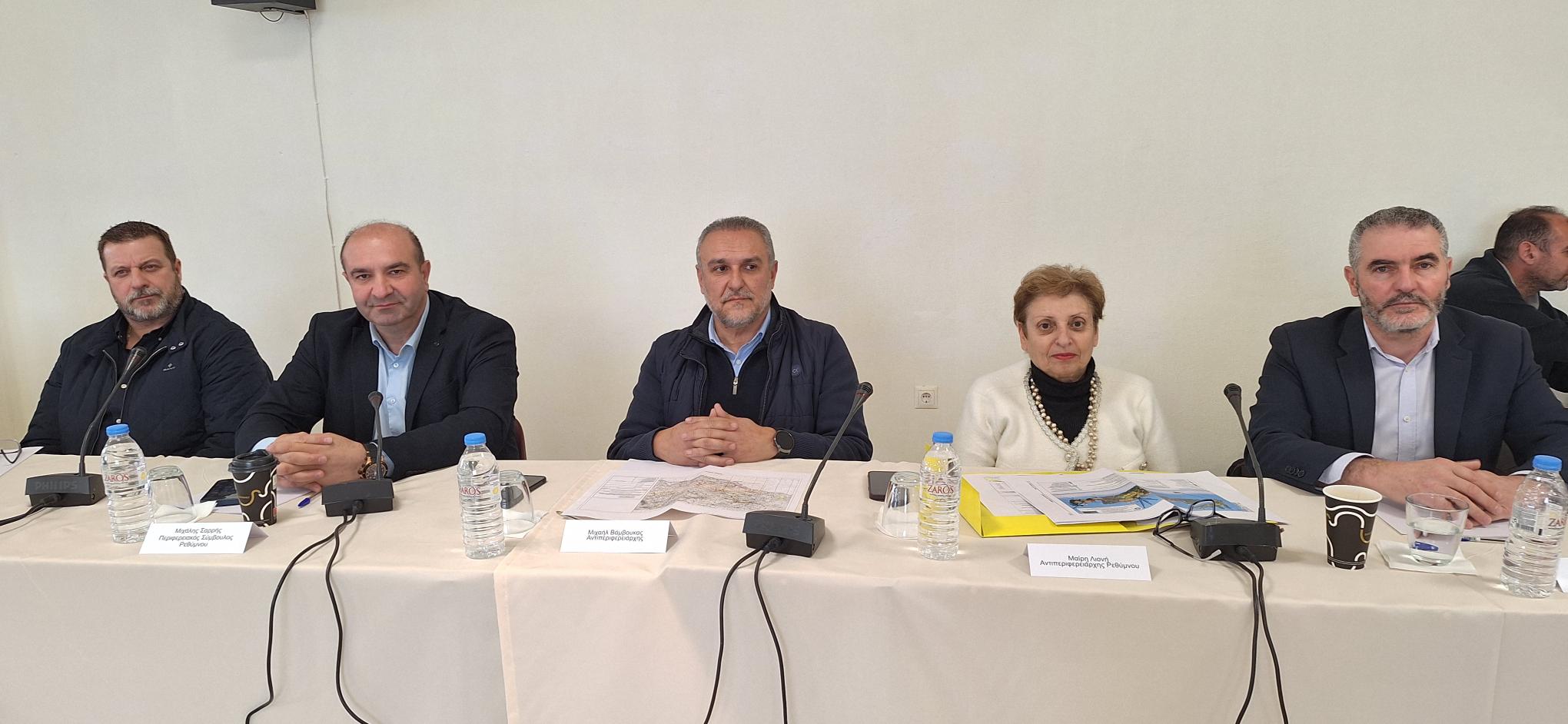 Στη σύσκεψη συμμετείχαν εκτός από τον οικοδεσπότη Δήμαρχο κ. Γιάννη Ταταράκη, ο οποίος είχε και το συντονισμό της συζήτησης, ο Δήμαρχος Αμαρίου κ. Παντελής Μουρτζανός, ο Δήμαρχος Αρχανών–Αστερουσίων κ. Μανώλης Κοκοσάλης, Δήμαρχος Βιάννου κ. Παύλος Μπαριτάκης, ο Δήμαρχος Γόρτυνας κ. Μιχάλης Κοκολάκης, ο Δήμαρχος Ιεράπετρας κ. Μανώλης Φραγκούλης, ο Δήμαρχος Μινώα Πεδιάδας κ. Βασίλης Κεγκέρογλου και ο Δήμαρχος Φαιστού κ. Γρηγόρης Νικολιδάκης.