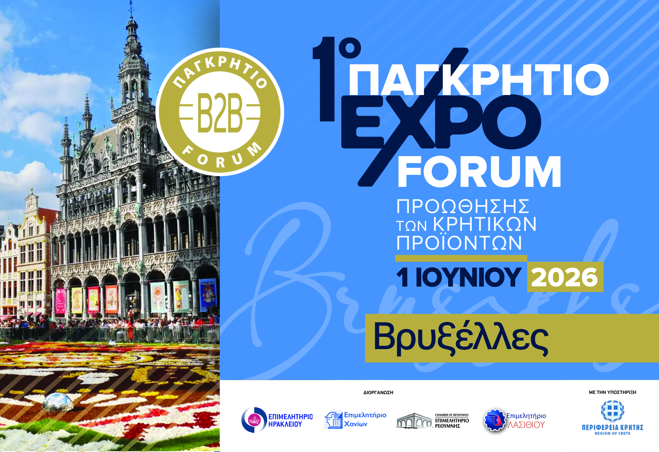 Το 1ο Παγκρήτιο expo-Forum στις Βρυξέλλες διοργανώνεται από τα Επιμελητήρια της Κρήτης με κοινό στόχο την προώθηση των κρητικών προϊόντων και την ενίσχυση της εξωστρέφειας των επιχειρήσεων-μελών τους στη διεθνή αγορά.