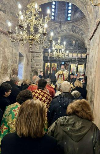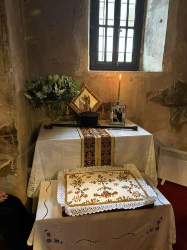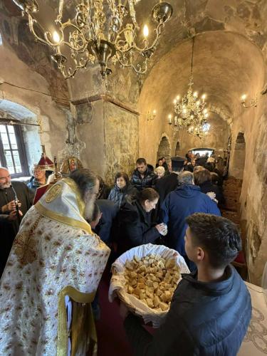 Στους πολυπληθείς προσκυνητές προσφέρθηκε, στους χώρους της Ιεράς Μονής, επιμνημόσυνη δεξίωση.