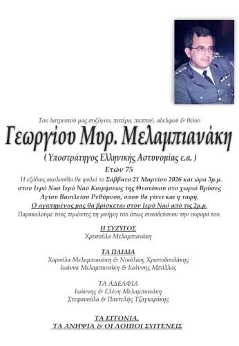 Το τελευταίο αντίο θα ειπωθεί στο χωριό καταγωγής του, τις Βρύσες Αγίου Βασιλείου το Σάββατο 21 Μαρτίου και ώρα 3μ.μ.