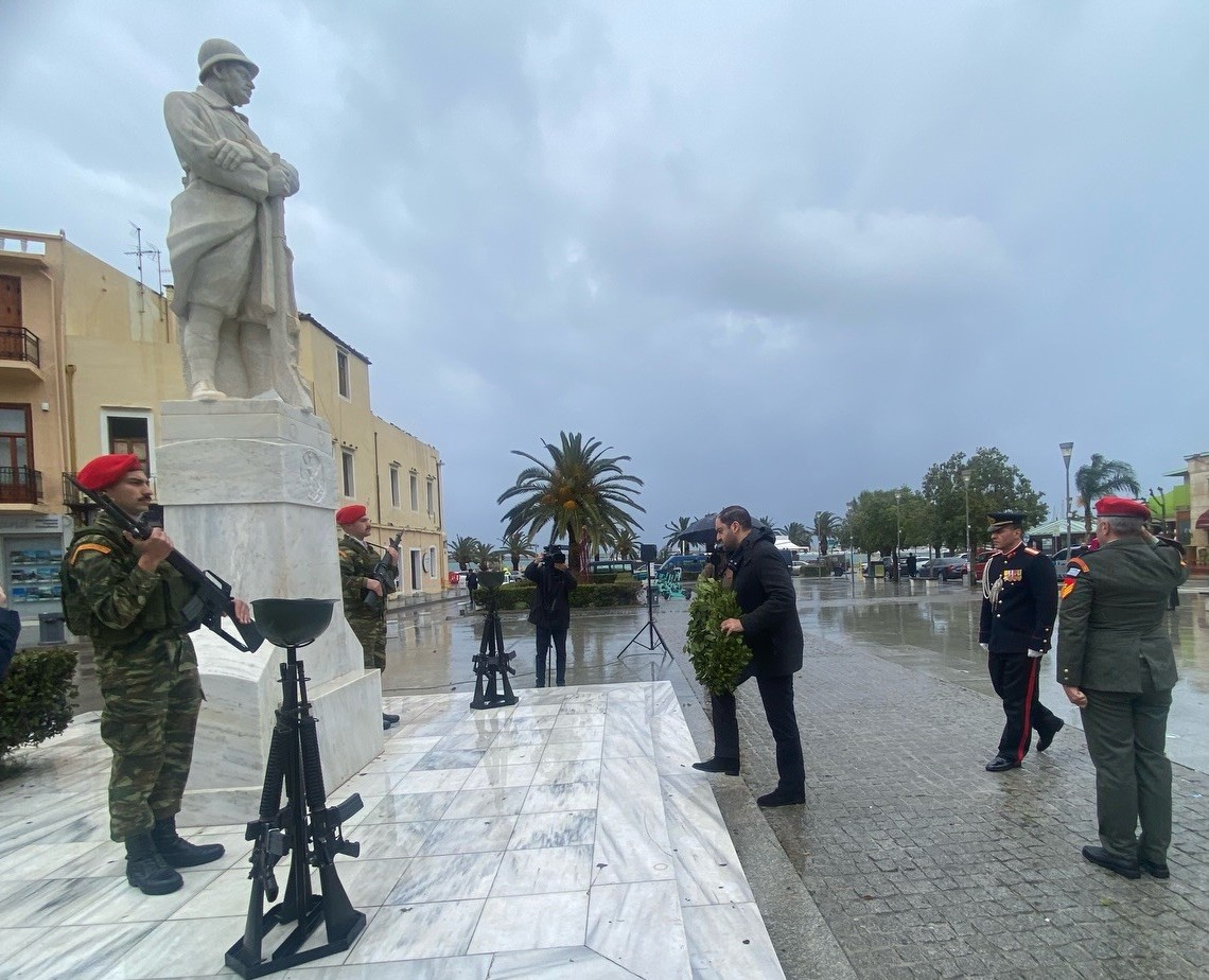 Υπό βροχή και με τσουχτερό κρύο πραγματοποιήθηκε η επιμνημόσυνη δέηση στην πλατεία Αγνώστου Στρατιώτη στο Ρέθυμνο.