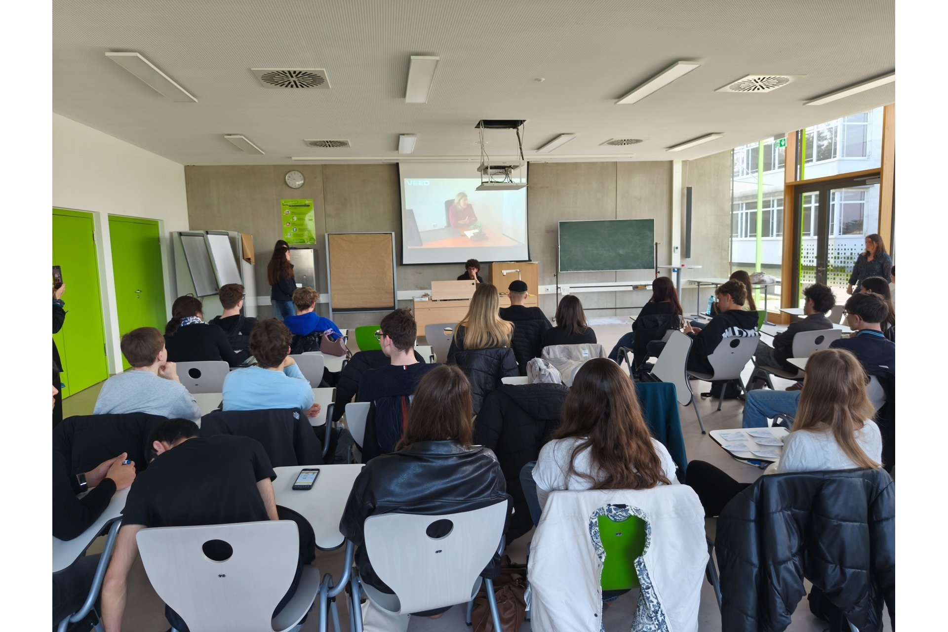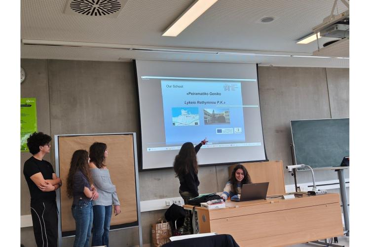 Την Δευτέρα 16-3-2026, η πρώτη επαφή και υποδοχή στο Λύκειο των 1.500 μαθητών/τριών άφησε όλες και όλους μας εντυπωσιασμένες/ους αντικρύζοντας ένα σχολείο νέο, υπερσύγχρονο, πλήρως εξοπλισμένο με αίθουσες και εργαστήρια εκπαίδευσης, εργασίας, εκδηλώσεων, τέχνης και ανάπαυσης, που αποδεικνύει την προτεραιότητα της πολιτείας αυτής στην εκπαίδευση. Την πρώτη μέρα, οι μαθητές/τριες από τα τέσσερα συνεργαζόμενα σχολεία (Γερμανίας, Ρεθύμνου, Τσεχίας και Πορτογαλίας) συμμετείχαν σε ένα παιχνίδι γνωριμίας (Bingo) εστιασμένο στην ενεργό συμμετοχή και την πολυπολιτισμικότητα και έπειτα συμμετείχαν σε δύο πολύ ενδιαφέροντα βιωματικά εργαστήρια: Το ένα αφορούσε την κατανόηση και εφαρμογή διαφορετικών δημοκρατικών τρόπων λήψης αποφάσεων (QUARARO-Εκπαιδευτικό Παιχνίδι Δημοκρατίας) και το άλλο τους μηχανισμούς διακρίσεων και ρατσισμού, τα αίτια δημιουργίας και τον τρόπο άρσης των στερεοτύπων και προκαταλήψεων που έχουμε απέναντι σε διαφορετικούς ανθρώπους και ομάδες.